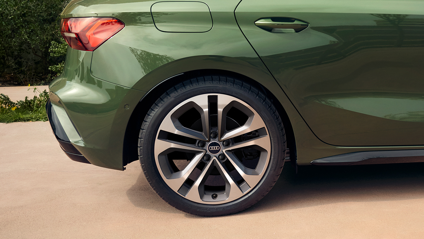 Audi A3はリヤからの眺めも力強いスタイルを誇ります。デザイン性と視認性を高次元で満たす立体的な造形のLEDリヤコンビネーションライトに加え、フロントバンパーと合わせた統一感あるスポーティな意匠のリヤバンパーが、ワイド&ローなプロポーションを強烈に主張します。