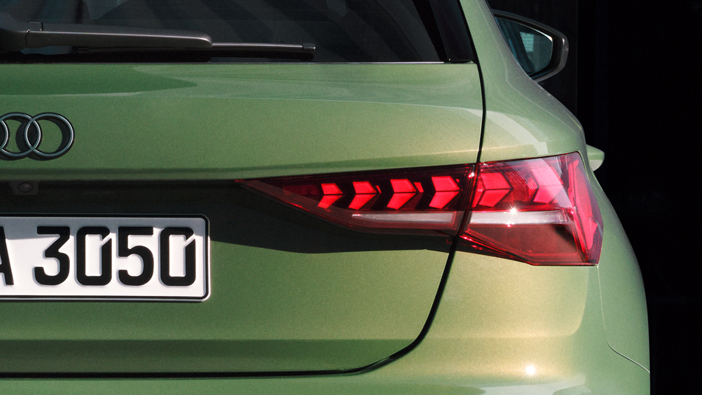 デジタル技術によって先進的なライトシグネチャーを生み出すデイタイムランニングライト*。新たにデザインされたライトエレメントがAudi A3の個性をより際立たせます。
