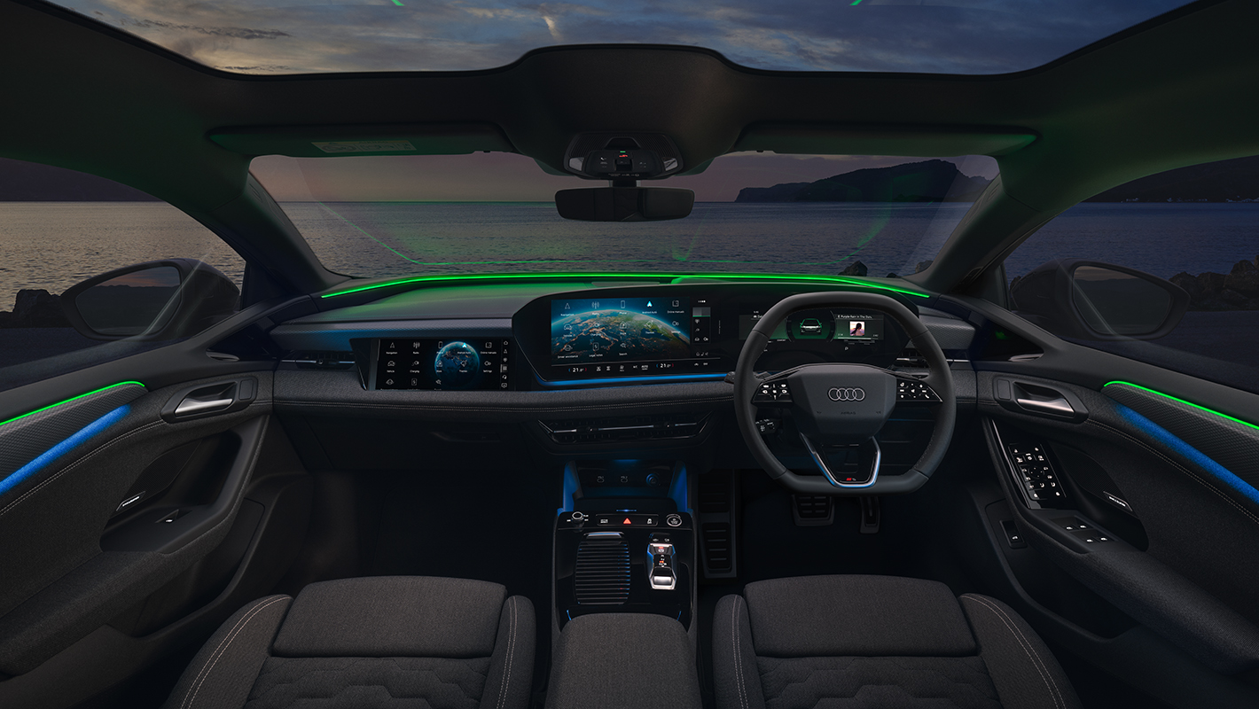 Audi A6 e-tronは広々としたゆとりの空間に先進のデジタルコックピットを融合。ラウンジを思わせる居心地の良さと高度な機能性を両立しています。人間工学に基づき緻密に設計された空間は、ドライバーを包み込むような快適性を追求しデザインされています。ダッシュボード全面に広がるMMIパノラマディスプレイは先進のデジタルステージを象徴。リヤシートは、電気自動車ならではのセンタートンネルのないフロアで足元まで広く開放的なスペースを確保しています。
