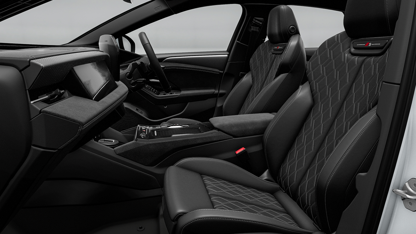 一体型ヘッドレストを備えたホールド性の高いスポーツシート。シートサイドボルスターはコーナリングの際、身体をしっかりサポートする形状に。パーフォレイテッド加工が施され、シートベンチレーション機能を搭載。マッサージ機能も備えています。バックレストのSロゴ、上質で温かみのあるファインナッパレザー、コントラストのある印象的なダイヤモンドステッチが、スポーティでエレガントな雰囲気を際立たせます。