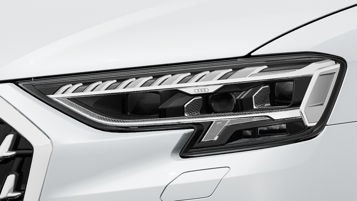 マトリクスLEDヘッドライトをさらに進化させた、Audi最先端のライティングテクノロジー。より高解像度の光を投影することで、さらに高精細に路面を照らします。対向車や先行車の車両を検知すると、検知された車両への光を正確にカット。ハイビームの自動制御と流れるような配光遷移により、シームレスな光を描きます。これにより、暗闇でのドライブの安全性と快適性をさらに向上させます。