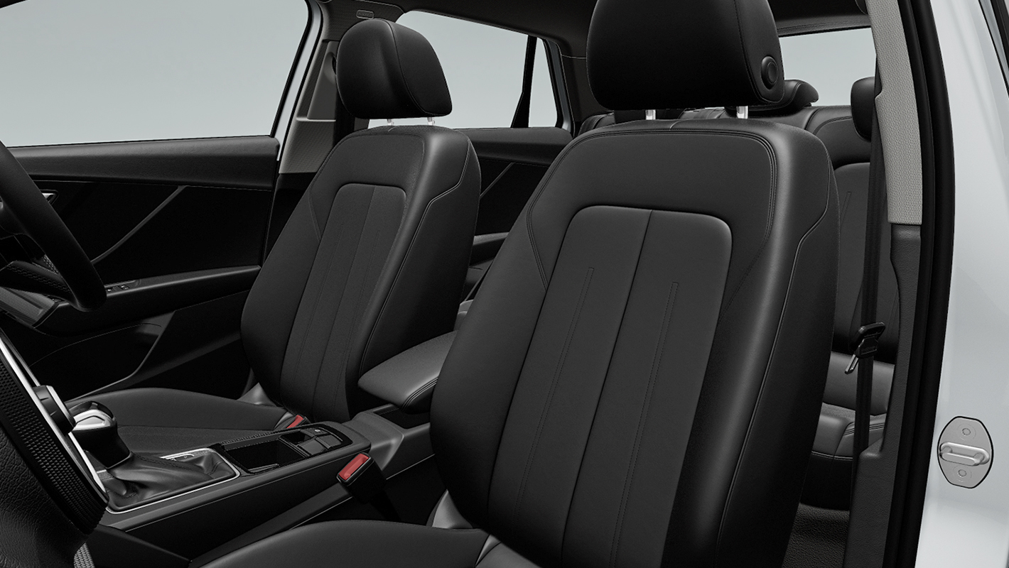 バーチャルコックピットプラス、タッチディスプレイ、スクリプトクロスで仕立てられたスタンダードシートを標準装備。オプションでブラックのレザー/アーティフィシャルレザーシートを選択することもできます。