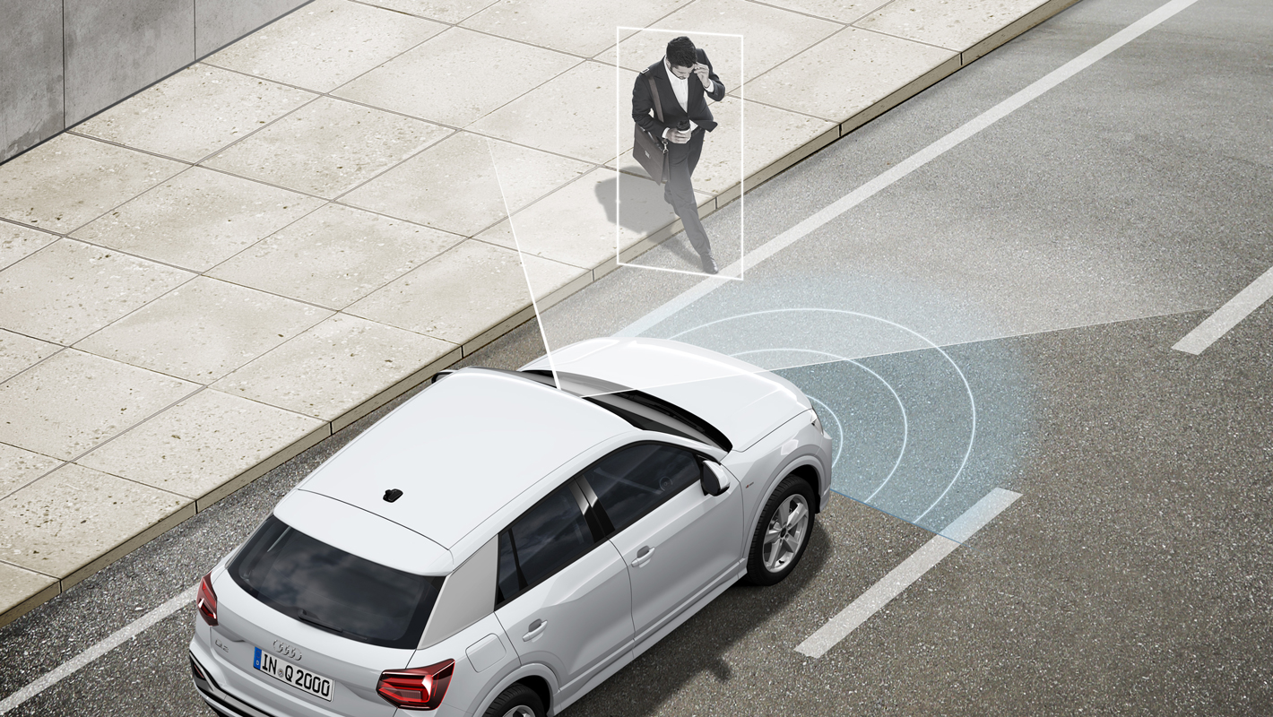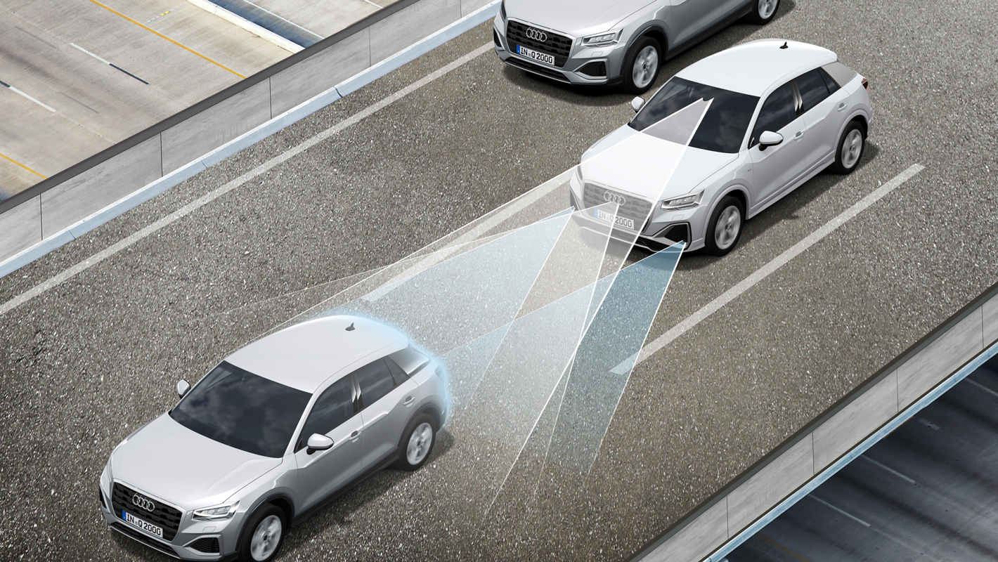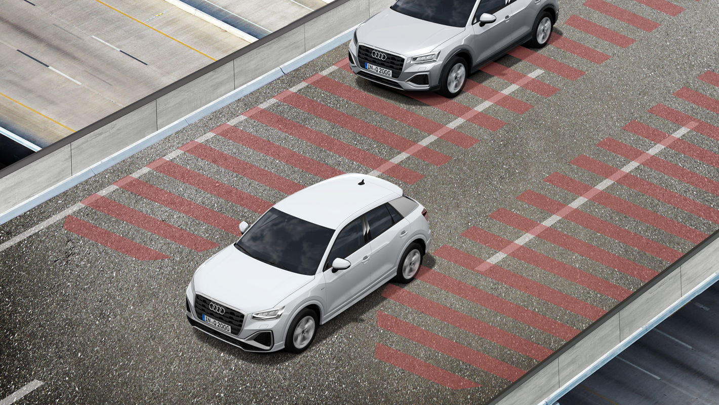 駐車スペースからバックで出る場合に、左右から接近する車両を監視。衝突の危険を警告します。ドライバーへの警告はMMIタッチディスプレイへの表示と音、そしてブレーキによる振動によって段階的に行われます。