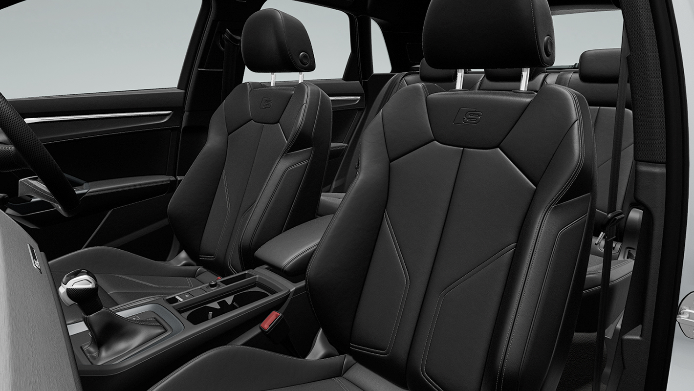 スポーツシート (フロント) - レザー/アーティフィシャルレザー S lineロゴ - ブラック (ロックグレーステッチ)
