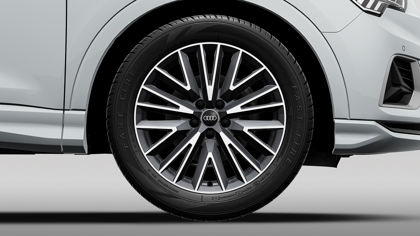 アスリートのような造形のボディをスポーティに磨き上げたS line。ダイナミックな大型エアインレットやフラットなブレードを備えたバンパーがフロントフェイスを引き締めます。Audi Q3では、縦のラインを強調したデザインでSUVの力強さを表現するシングルフレームグリルと、18インチアルミホイールを採用。Audi Q3 Sportbackはシャープな印象を与えるハニカムメッシュのシングルフレームグリルと、19インチアルミホイールを装備。