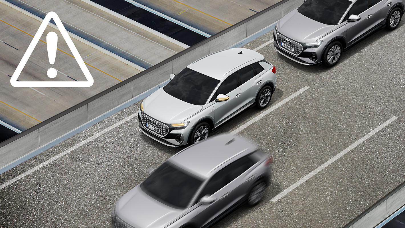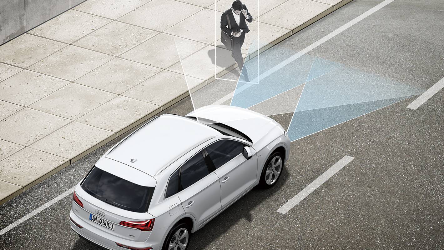 駐車スペースからバックで出る場合に、左右から接近する車両を監視。衝突の危険を警告します。ドライバーへの警告はMMIタッチディスプレイへの表示と音、そしてブレーキによる振動によって段階的に行われます。