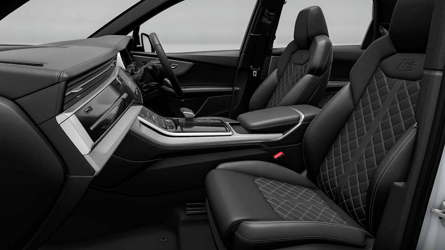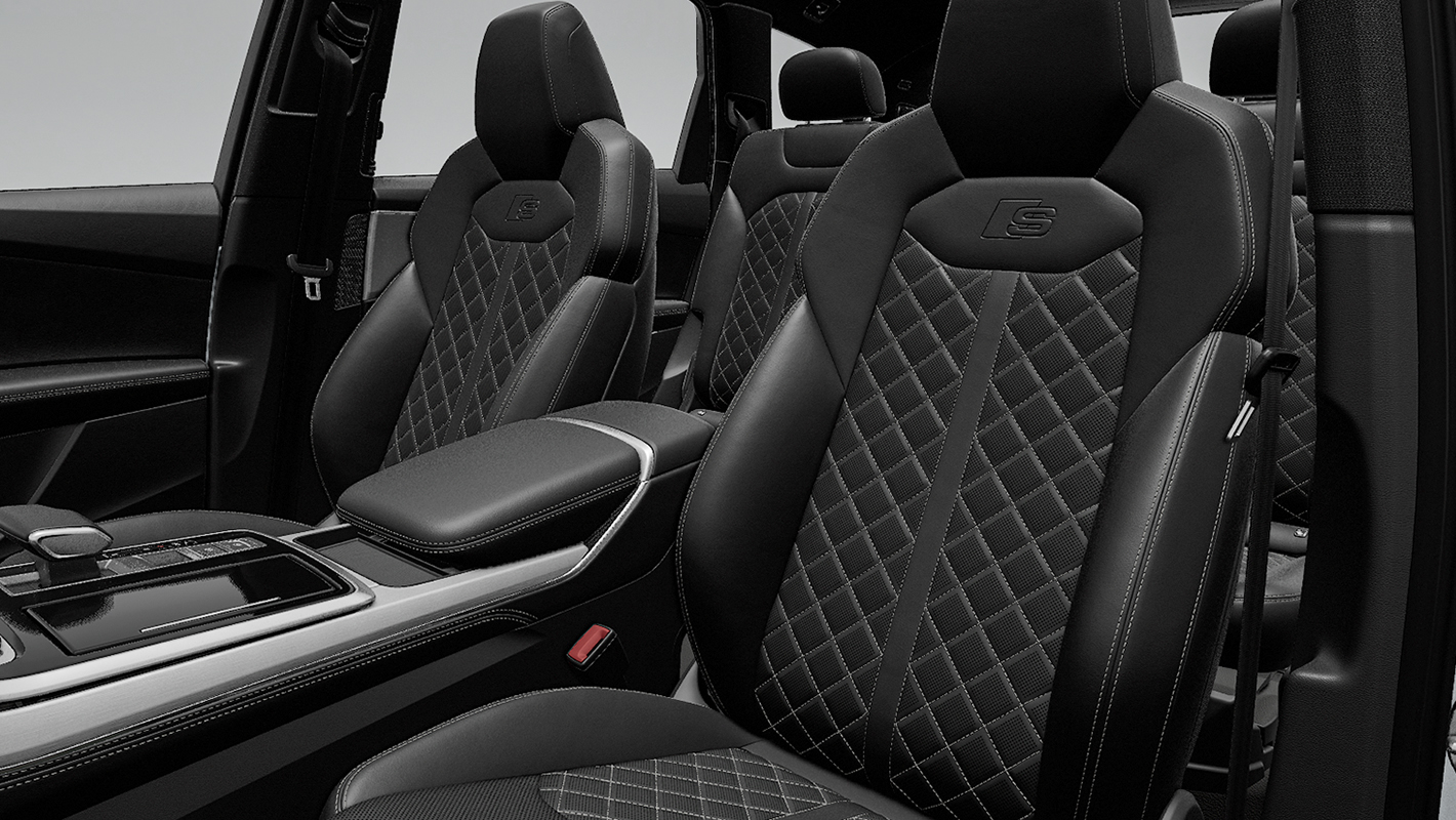 一体型ヘッドレストを備えたホールド性の高いスポーツシート。シートサイドボルスターはコーナリングの際、身体をしっかりサポートする形状に。バックレストのSロゴ、パーフォレイテッド加工を施した上質で温かみのあるバルコナレザー、コントラストのある印象的なダイヤモンドステッチが、スポーティでエレガントな雰囲気を際立たせます。