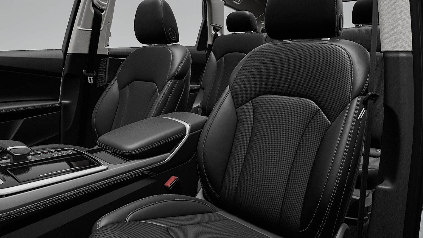 座り心地に優れた快適性の高いコンフォートシート。上質で温かみのあるバルコナレザーと、穴あき加工を施したクリケットレザーを組み合わせ、エレガントな雰囲気と耐久性を両立しています。