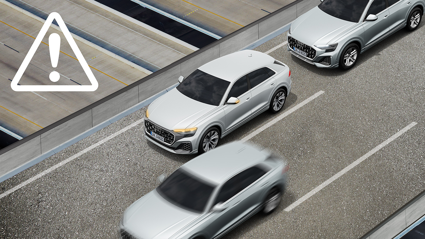 車両のリヤに設置された、レーダーセンサーが捉えたデータを利用して、後方から接近する車両を監視。追突されるリスクが検知された場合、アウディプレセンスベーシックを起動します。