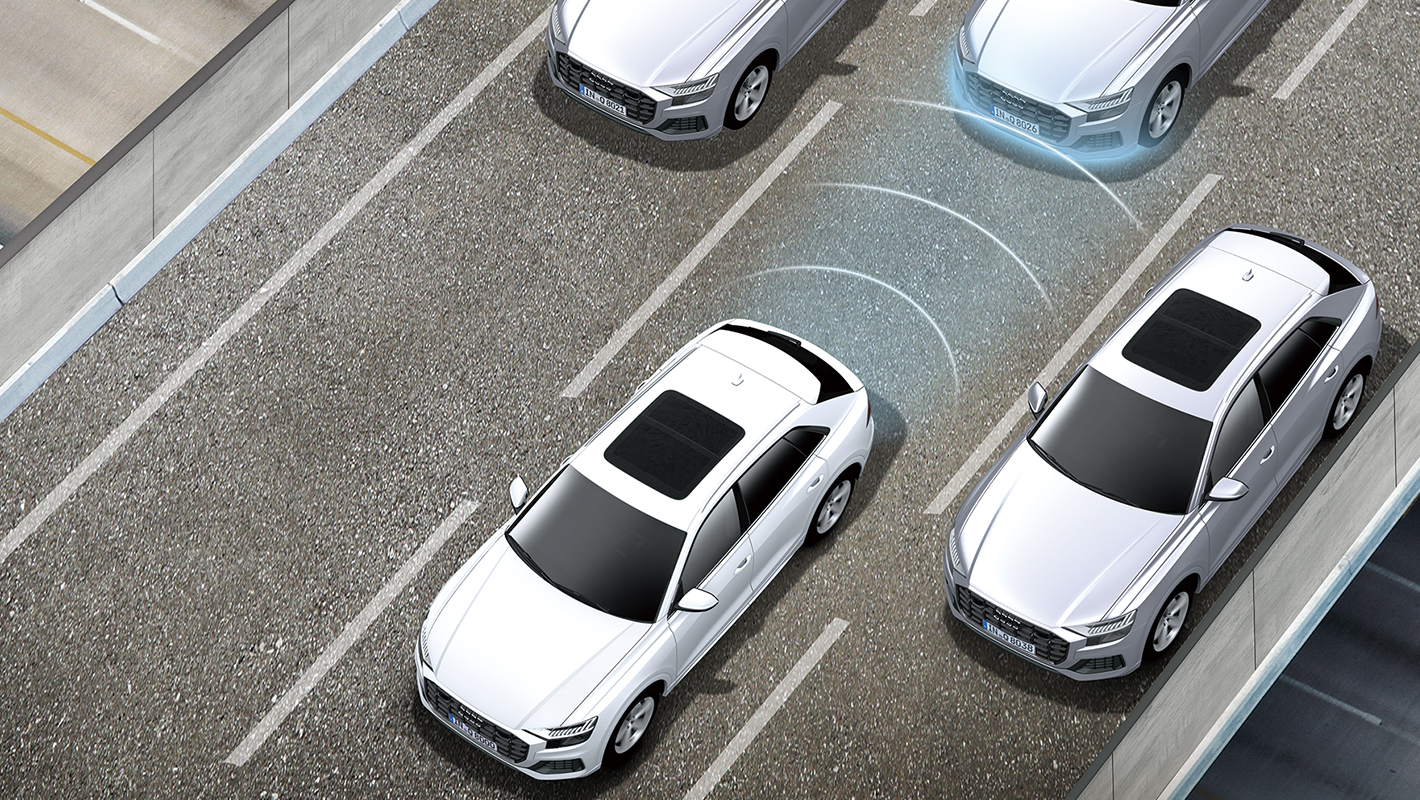 フロントクロストラフィックアシストの機能として、車両の左右から接近する車両を監視。衝突されるリスクが検知された場合、アウディプレセンスベーシックを起動します。アウディプレセンスベーシック、アウディプレセンスリヤと連携し、全周囲からの衝突に備えることができます。