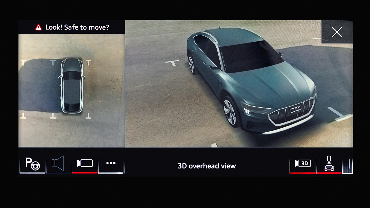 4台の広角カメラで自車の全周囲360度を捉え、様々な角度からの映像を映し出すことで、駐車時の操作をより簡単に行えるようになります。これまでにあった、上空からの俯瞰映像だけでなく、合成された車体を360度の3Dビューで表示することができ、MMIタッチディスプレイによって車体の映像を指先で角度を変えて確認できます。