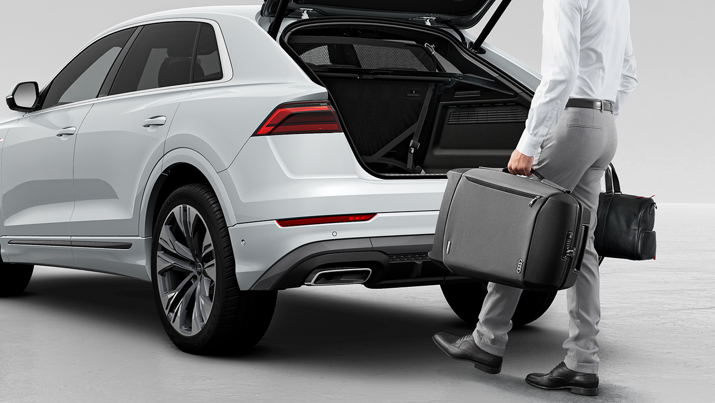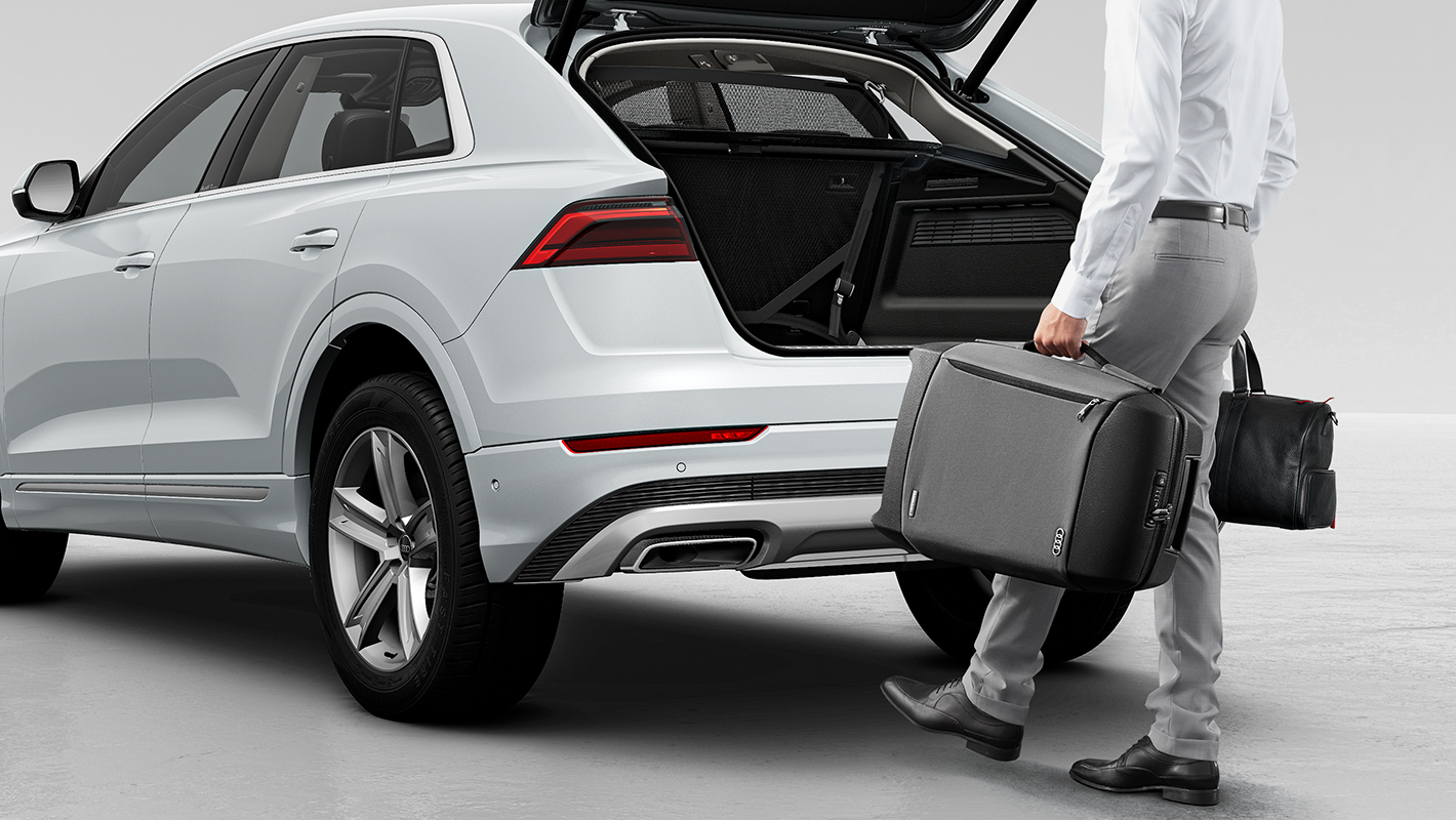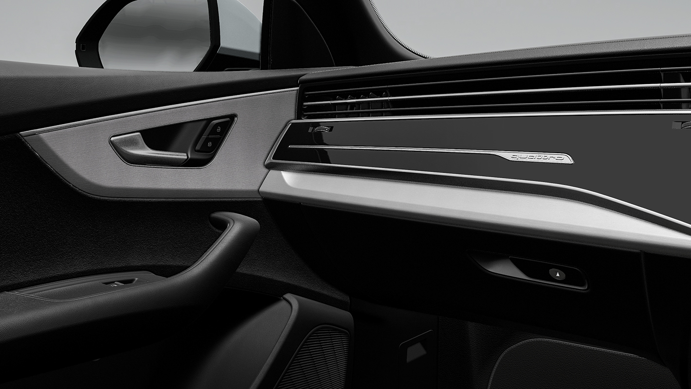 アダプティブエアサスペンションは、4輪すべての減衰特性を無段階に調整する電子制御式エアサスペンションです。車高とダンピングが自動的に制御され、快適な乗り心地とよりダイナミックな走りを実現。アウディドライブセレクトでオンロードからオフロードまで走行シーンに合わせた最適な車高に設定可能。また、荷物の積み込みを容易にするため、ラゲッジコンパートメントにあるボタンでリヤを低く設定することもできます。アダプティブエアサスペンション スポーツは、アダプティブエアサスペンションをベースに、サスペンション設定をよりスポーティな走行特性に適応させています。