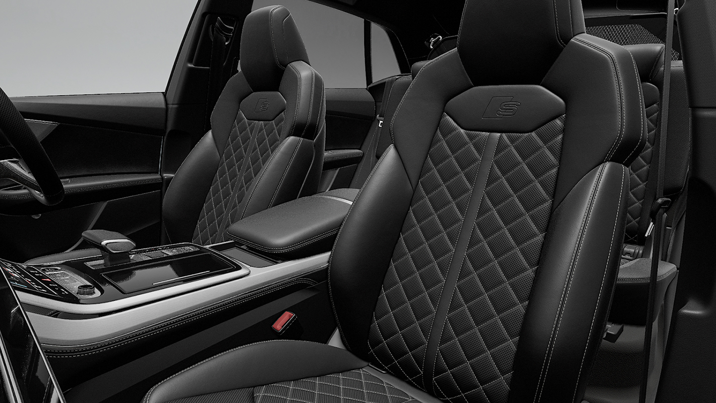 スポーティなドライビングの追求からデザインされたSロゴとロックグレーのコントラストステッチを施したスポーツシートは、優れた質感とホールド性を実現。Sロゴを備えたステアリングホイールやドアシルトリム、ブラックのヘッドライニング、マットブラッシュトアルミニウムデコラティブパネルなどスポーティネスを磨いた引き締まった空間が気分をより高揚させます。