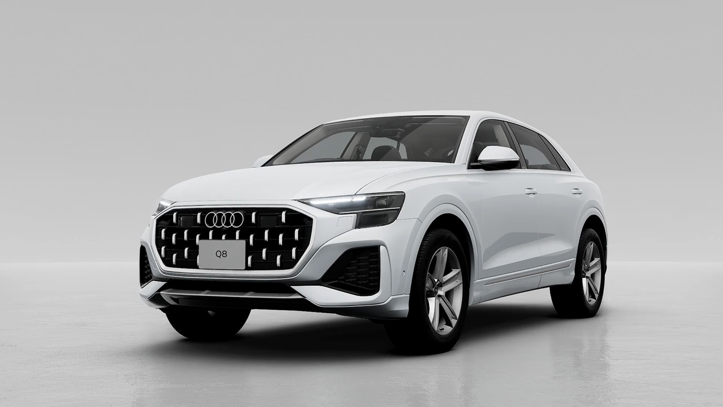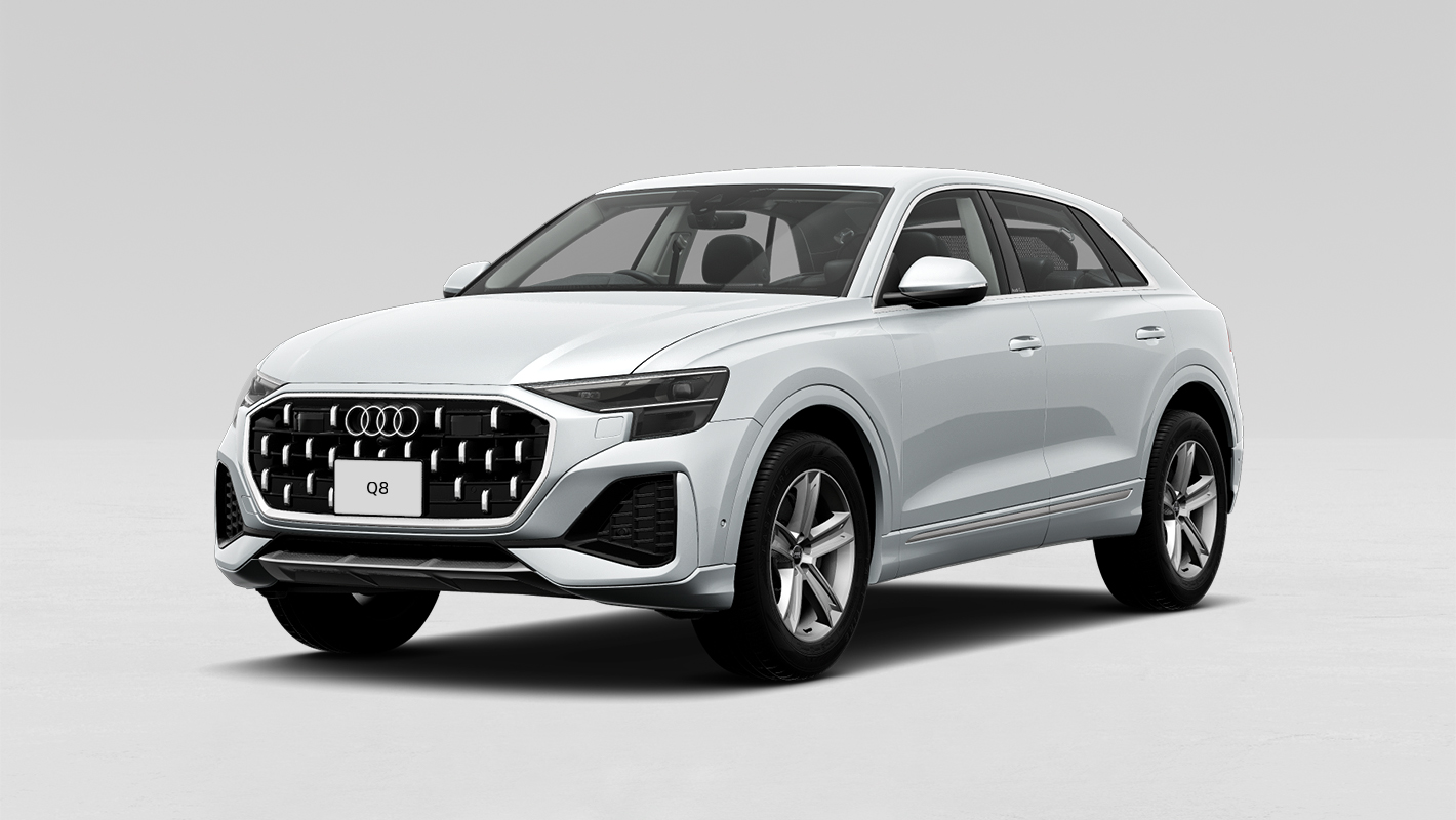 Audi Q8から、さらにスポーティな魅力をこの上なく引き出すS lineのエクステリア。グリルの周りをグレーで囲い込むことでよりワイド&ローのスタンスを強調。L字型の加飾を施したS line専用グリル。ボディ同色のS lineバンパーと大型のエアインレットが一体感を高め、スポーティネスとダイナミズムを併せ持つ印象的なフロントエンドを生み出します。