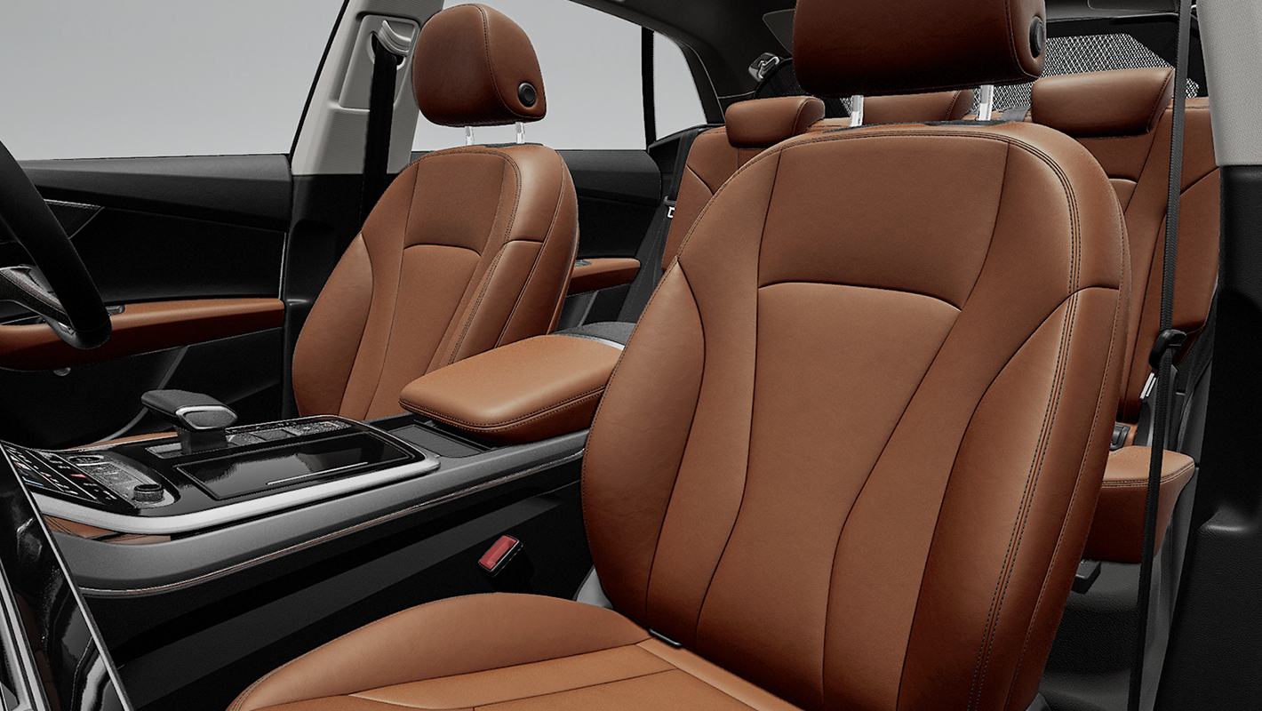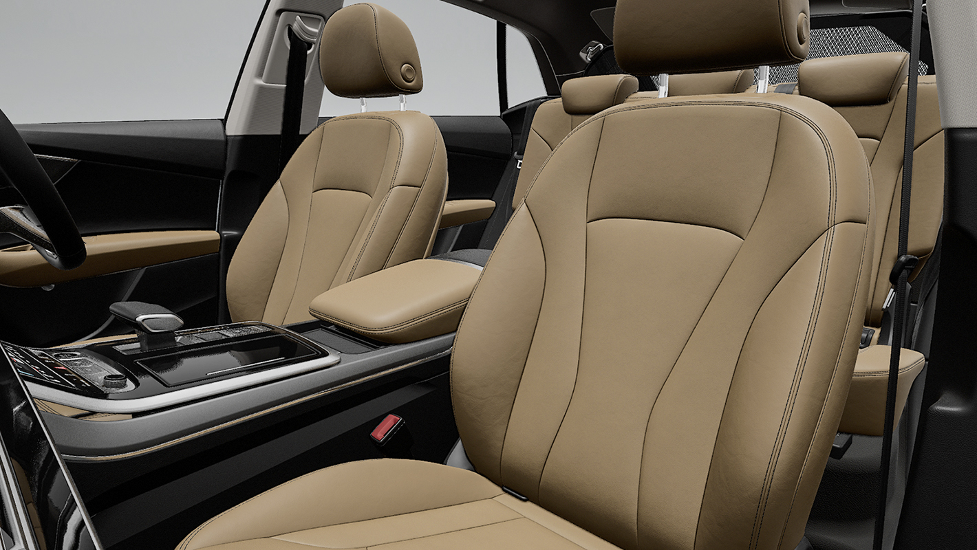 端正で先進性あふれるインテリアを構成するのは、レザー/アーティフィシャルレザーのシートやシルバーグレーダイヤモンドペイントのデコラティブパネル、上質な輝きを放つアルミニウム製のドアシルトリム、ルナシルバーのヘッドライニング。ラウンジのような心地よさと、インテリジェントに進化したテクノロジーが融合した空間が広がります。