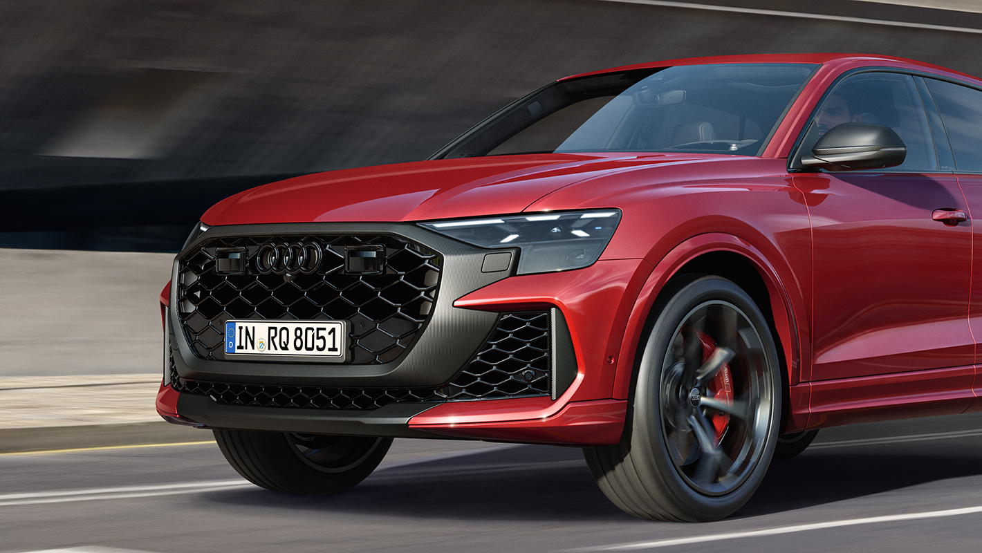 performanceモデルとして磨き上げたパワフルで表情豊かなRS専用エクステリアと、Audi Q8の頂点にふさわしい細部までエレガンスとスポーティネスを貫いたインテリア。印象的な表情を演出するライティングテクノロジー。Audi Sport史上最も強力なエンジンが生み出す比類なきドライビングダイナミクスを、個性際立つスタイリングに体現しています。