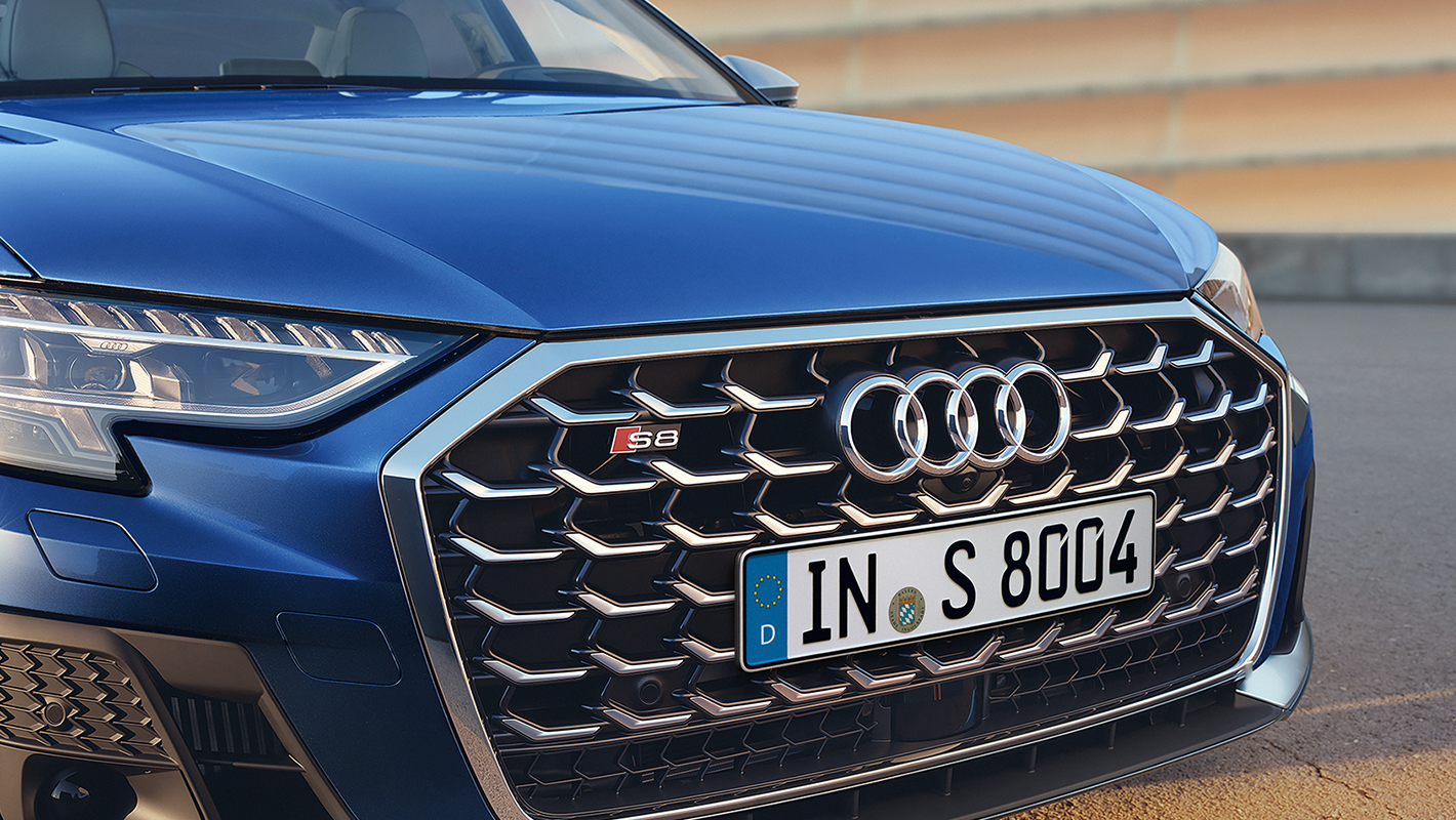 Audi S8の造形は、プレステージサルーンとしての品格と常識を超越するパフォーマンスへの自信に満ちています。Sモデル専用のシングルフレームグリルやバンパー、アグレッシブな21インチアルミホイールが精悍な表情を創出。端正なデザインのデジタルマトリクスLEDヘッドライト*とOLEDリヤライトは、美しさと革新性がひとつに調和しています。