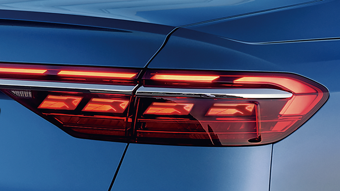 OLEDリヤライトは、点ではなく面全体が光ることで繊細なデザインと特徴的な発光パターンが可能に。インテリジェントな佇まいのシャープなデザインと共にリヤビューにまったく新しい表情を生み出しながら、視認性の向上にも大きく貢献します。