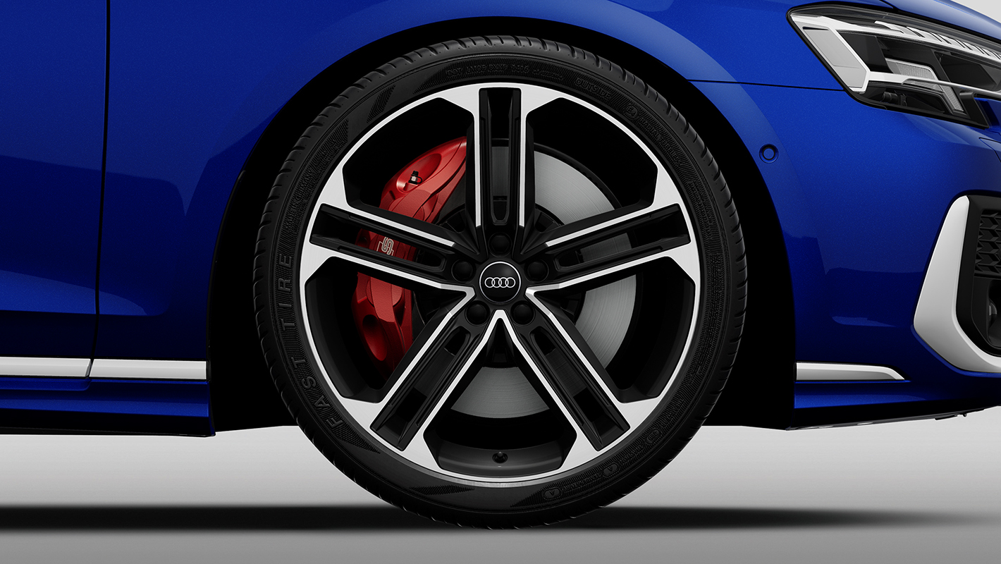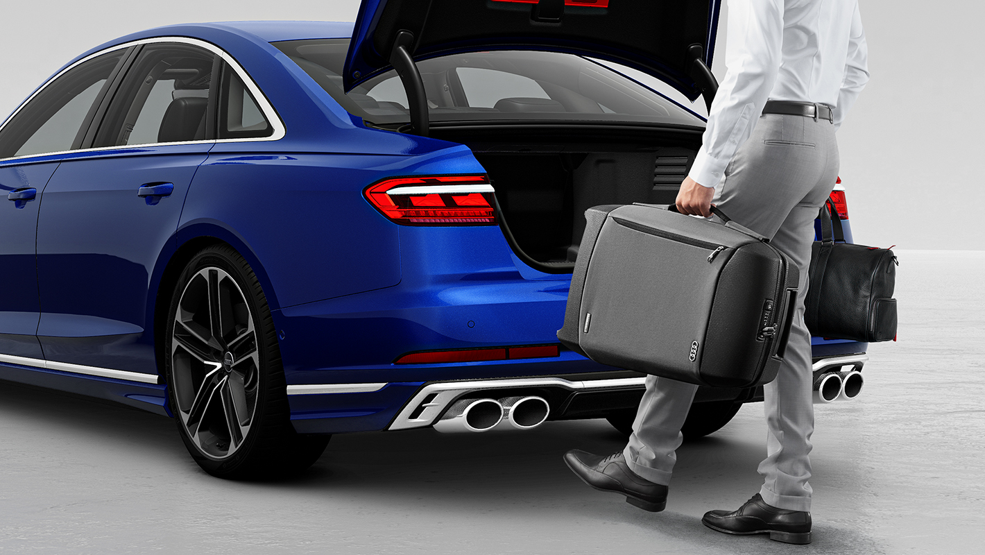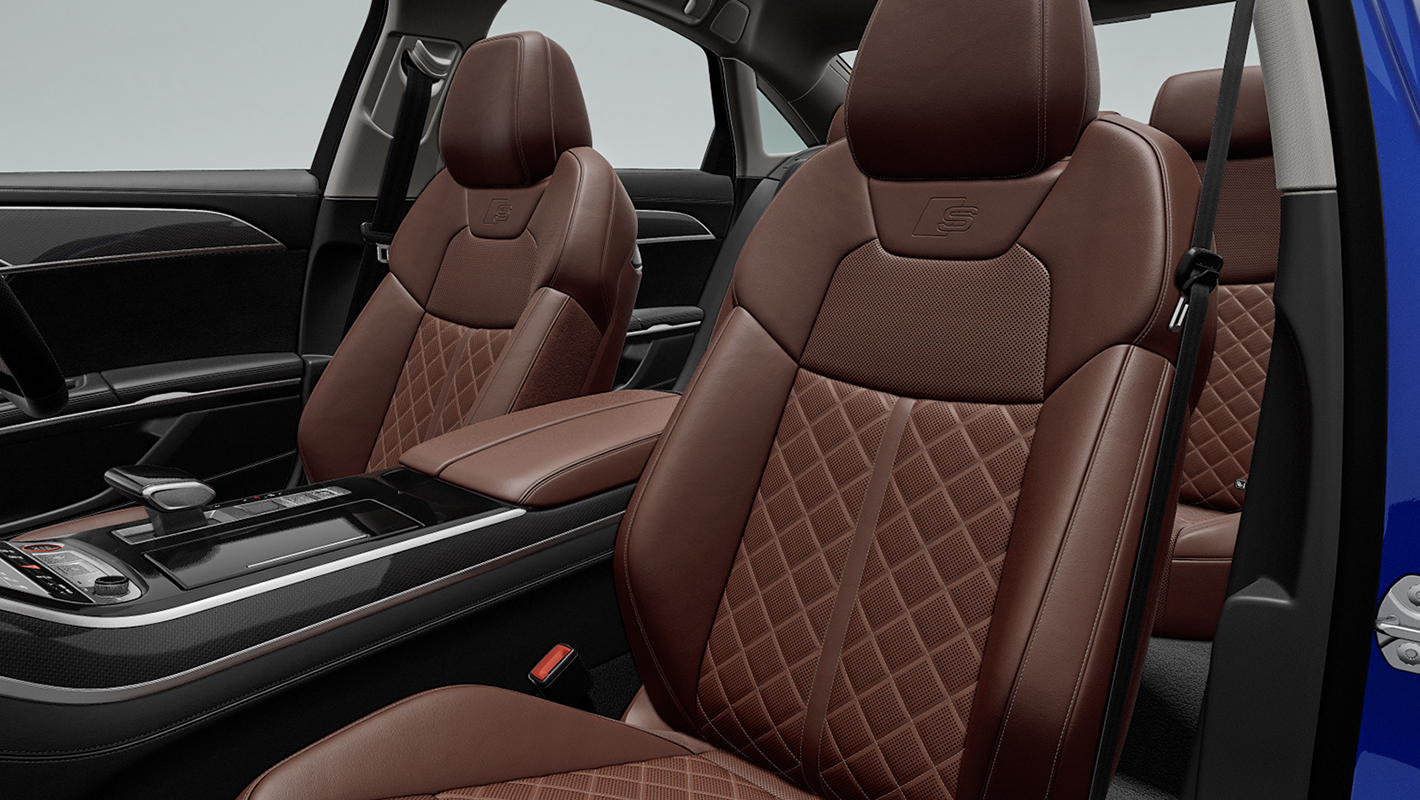 フラッグシップモデルにふさわしい洗練された姿と、Sモデル専用デザインが融合。アルミニウムルックインサートを備えたハニカムメッシュデザインのシングルフレームグリル、力強い印象の前後バンパー、4本出しのテールパイプがパフォーマンスの高さを表現。アルミニウムルックのエクステリアミラーハウジング、大径21インチのアルミホイールが精悍さを演出。Audi S8の造形は、プレステージサルーンとしての品格と常識を超越するパフォーマンスへの自信に満ちています。
