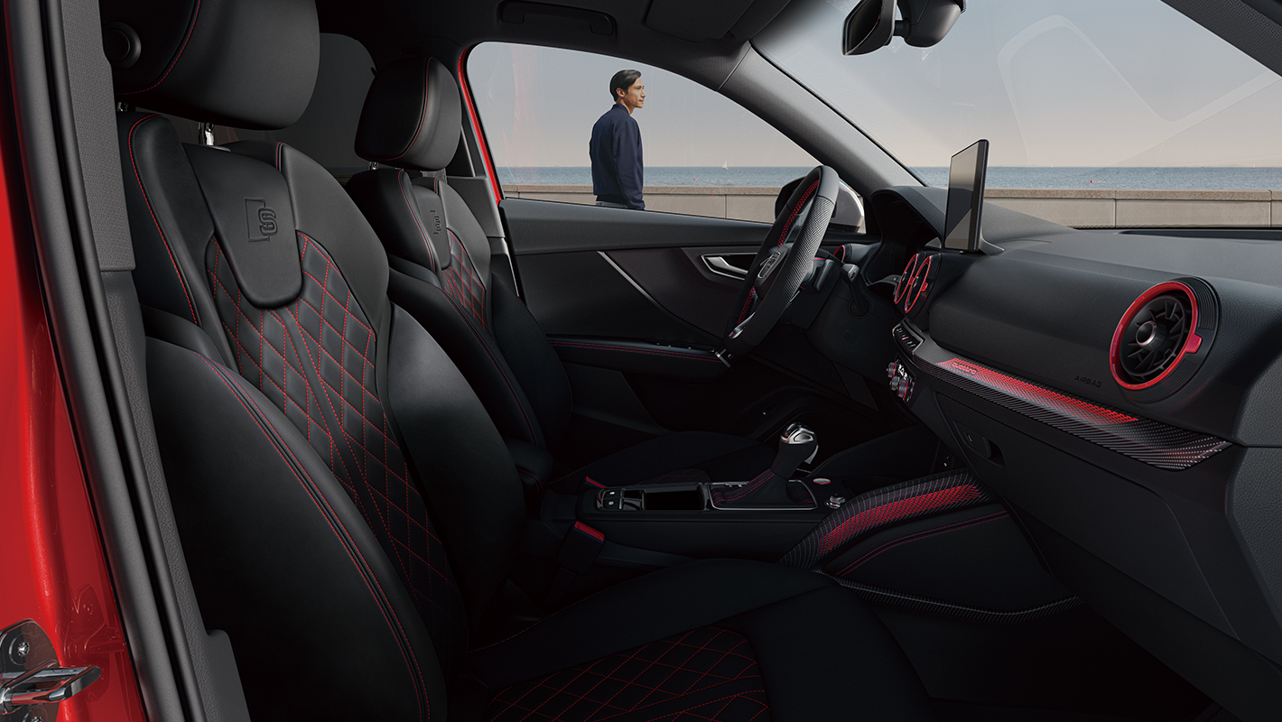 スタイリングをより精悍に仕上げるブラックAudi rings&ブラックスタイリングパッケージやインテリアを個性豊かに彩るSQ2インテリアデザインパッケージなど、アグレッシブなスタイル性を磨き上げる様々なオプションをご用意。