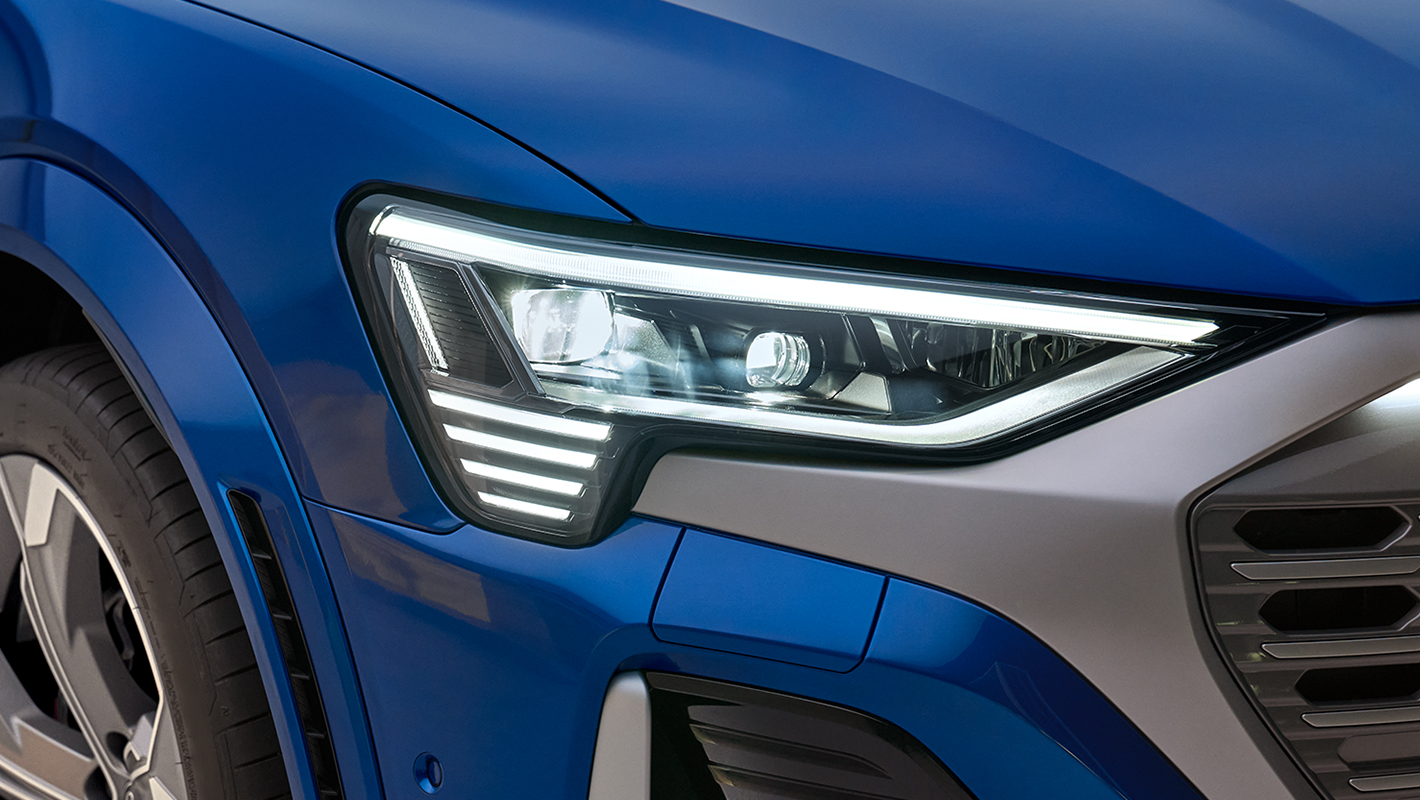 マトリクスLEDヘッドライトをさらに進化させた、Audi最先端のライティングテクノロジー。より高解像度の光を直接投影することで、さらに高精細な配光制御を実現しています。高速走行で対向車や先行車の車両を検知すると、検知された車両への光を正確にカット。ハイビームの自動制御と流れるような配光遷移により、シームレスな光を描きます。これにより、暗闇でのドライブの安全性と快適性をさらに向上させます。また車両停車時に作動するリービングホーム/カミングホーム機能には5種類のアニメーションをご用意しています。