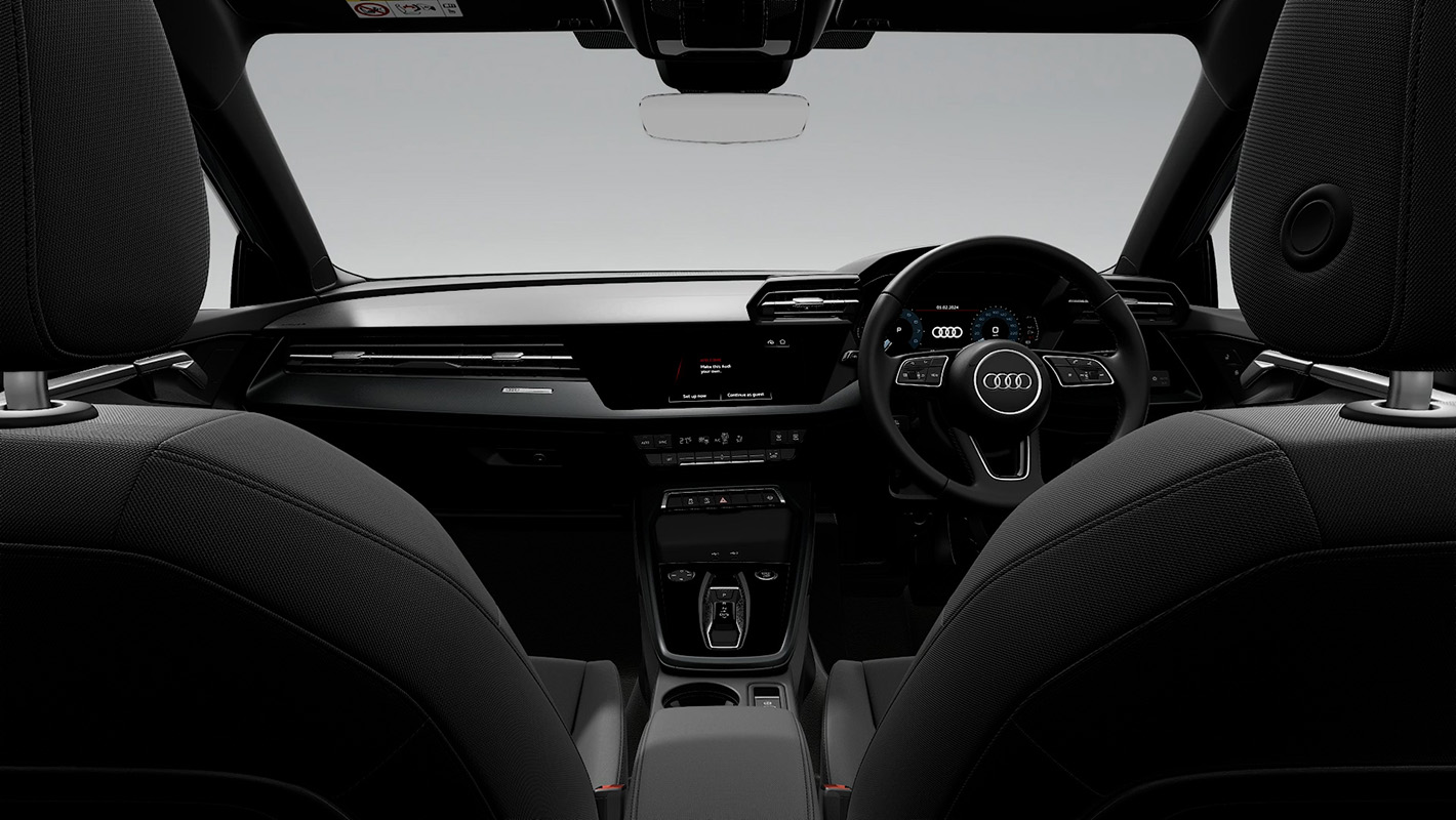 Audi A3が放つ魅力をさらに精悍に磨き上げたS lineでは、新たに採用された低く幅広いシングルフレームグリルに加え、ブラックトリムが組み合わされたブレードと一体化した幅広いエアインテークや、ダークカラーで仕上げたワイド&ローを強調するリヤディフューザー、Sルーフスポイラー*、18インチアルミホイールなど、ダイナミックなエクステリアが心躍る走りを予感させます。