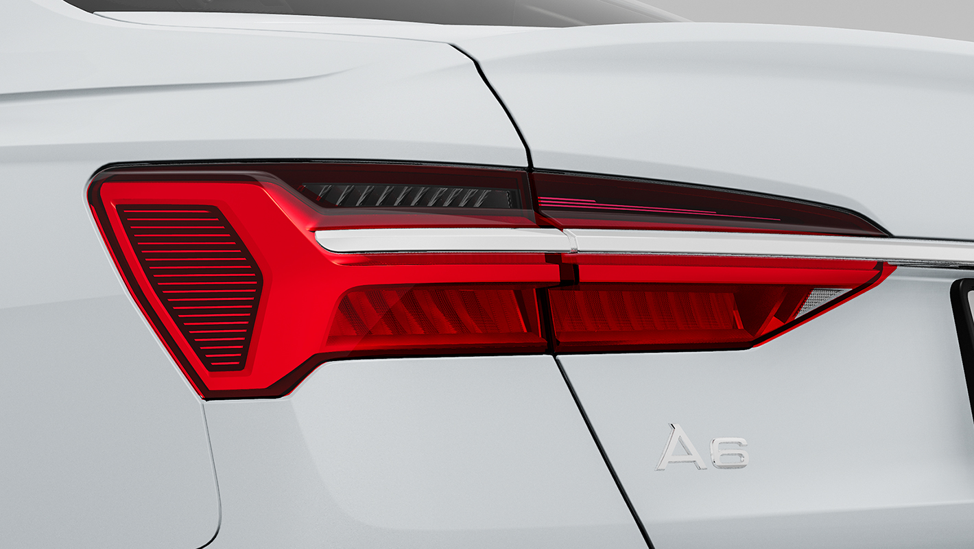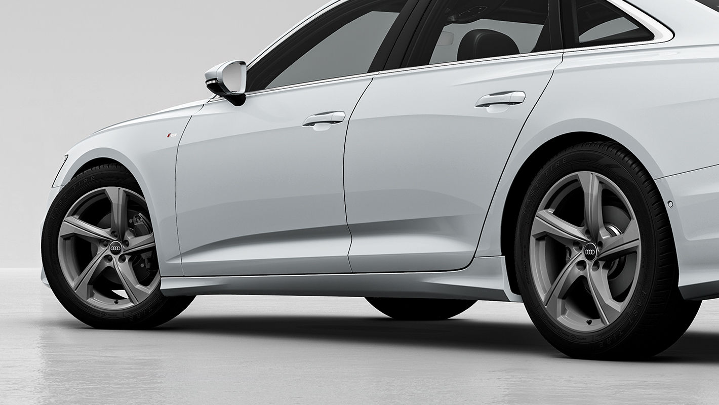 Audi独自の個性を明快に主張するAudi A6のフロントマスク。advanced にはダーククローム仕上げのシングルフレームグリルを採用。リヤディフューザーはセレナイトシルバーのブレードを備えたダイナミックなデザインで堂々たる風格が漂います。さらに5ダブルアームデザインの18インチアルミホイールが精悍さを演出します。
