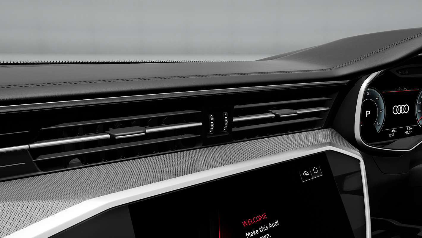 運転席、助手席、後部座席の左右それぞれで室温と風量を調節でき、快適な室内空間をもたらします。フロントではMMIナビゲーションのローワースクリーンを指でなぞるようにして左右それぞれの温度設定が可能。後部座席はタッチ式A/Cコントロールパネルを装備。乗員認識機能により効率的な温度ゾーンを調節。