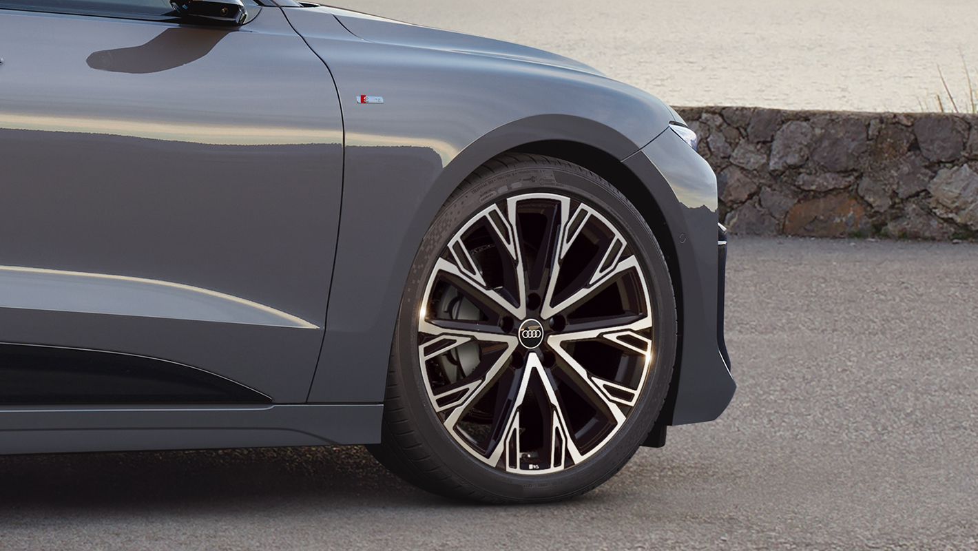 足元には標準で19インチホイール、S lineパッケージ*では20インチホイールを装備。さらにAudi Sportの21インチ大径ホイール*もご用意。力強く先進的なパフォーマンスを予感させるデザインが、Audi A6 e-tronのエクステリアを際立たせます。