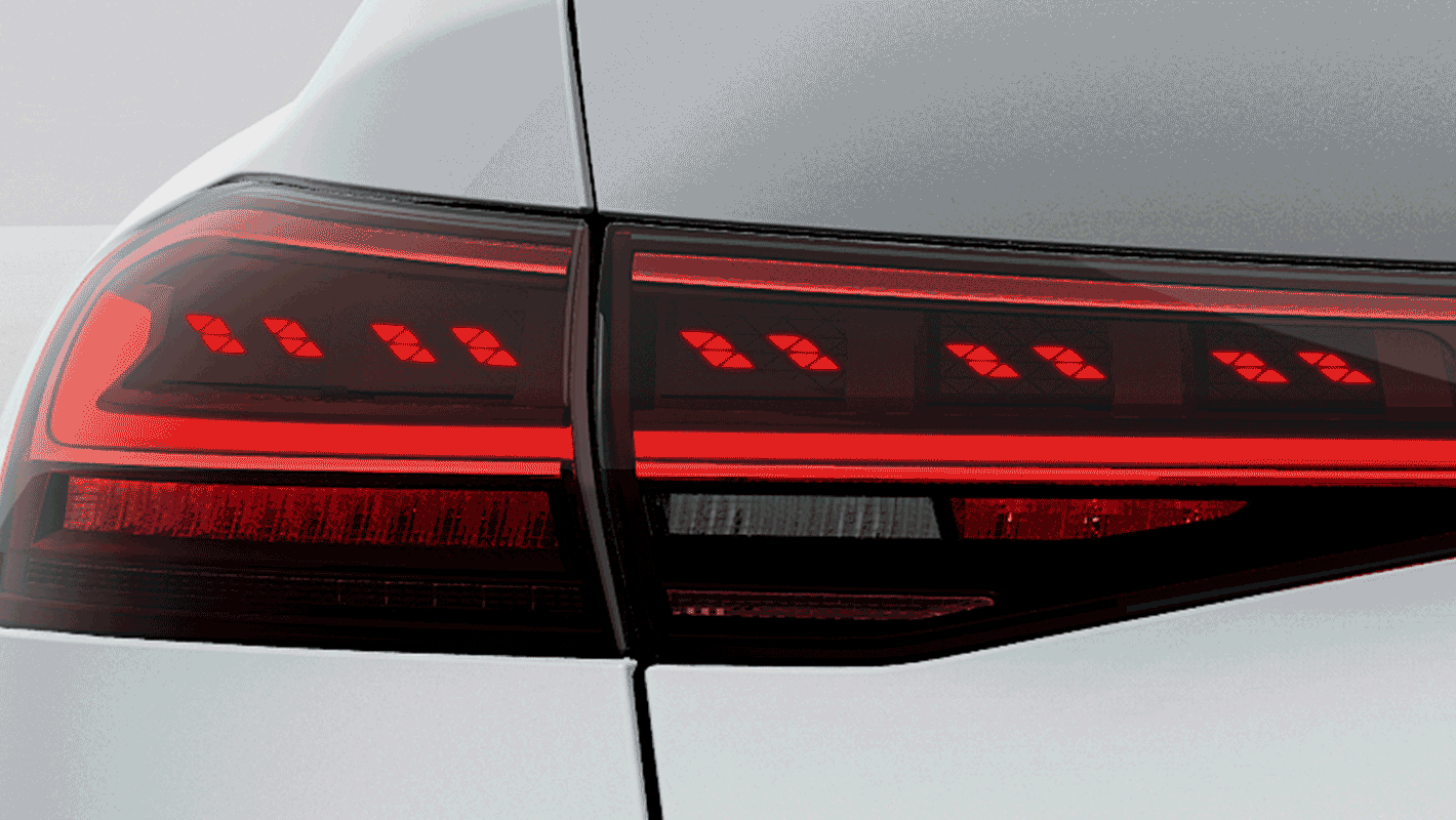進化したOLED技術によって、さらに均一な照明、高い視認性を実現。合計450個のセグメントに分かれたOLEDパネルと、専用に開発されたアルゴリズムによって多彩なシグネチャーを瞬時に生成でき、立体的で斬新なライティングデザインを生み出します。テールライトはMMIタッチディスプレイで8つの点灯パターンを切り替え可能。また、停車時に後続車が近づくとOLEDセグメントを強く点灯させることで車間距離の確保を促す機能や、ハザードランプに連動して警告シンボルを表示する機能も搭載しています。