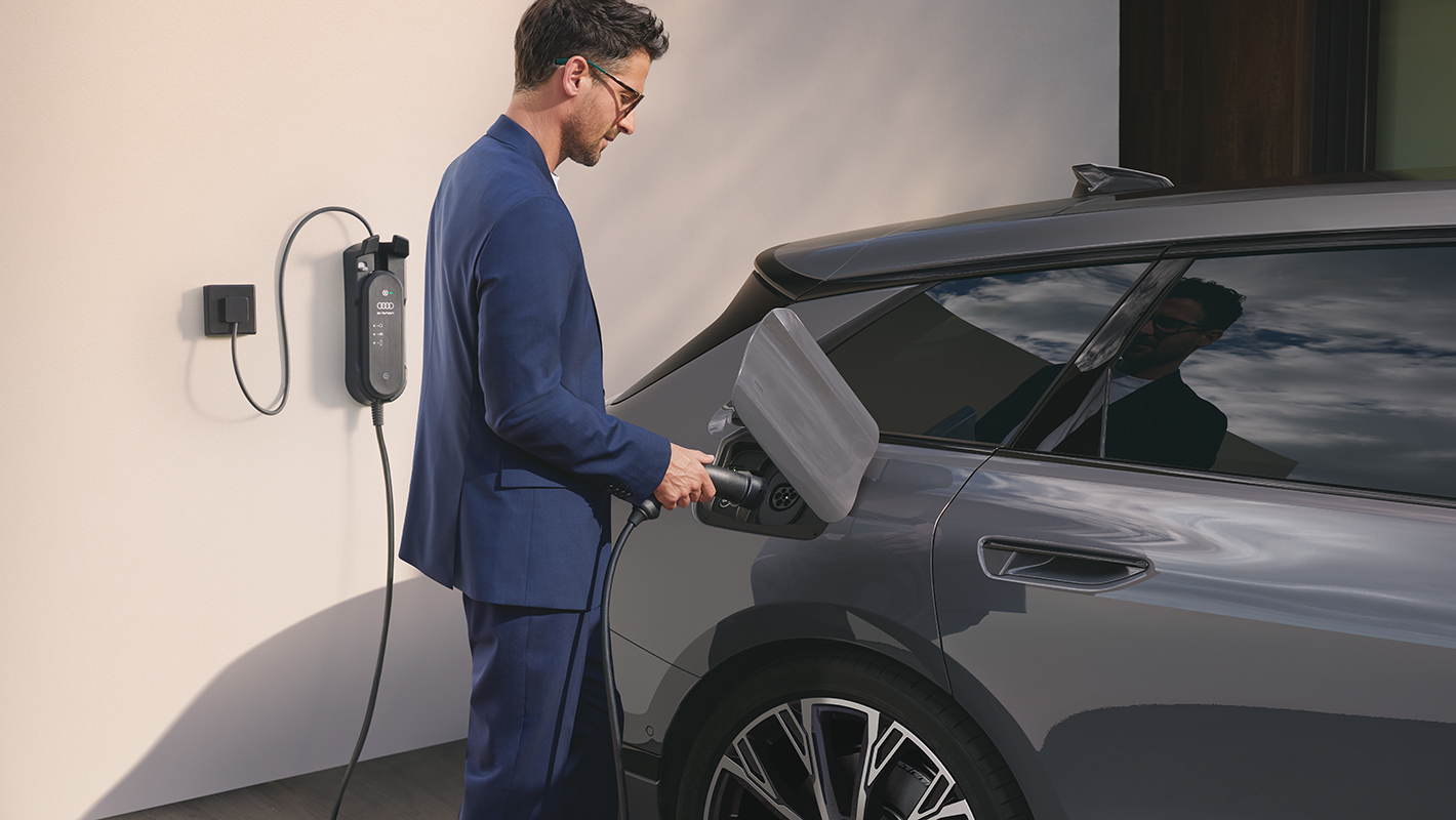 Audi A6 e-tronは、充電器を差し込むだけで簡単に充電が可能。ご自宅での普通充電*¹はもちろん、外出時も各地で増え続ける普通充電・急速充電施設*²の利用ができます。急速充電はStandard Model:最大112.5kW、performance / quattro:最大135kWまで対応。バッテリー容量10%から80%までの充電は約35分*³で完了します。充電中は、クルマから離れていてもスマートフォンのmyAudiアプリから充電状況をいつでも確認できます。