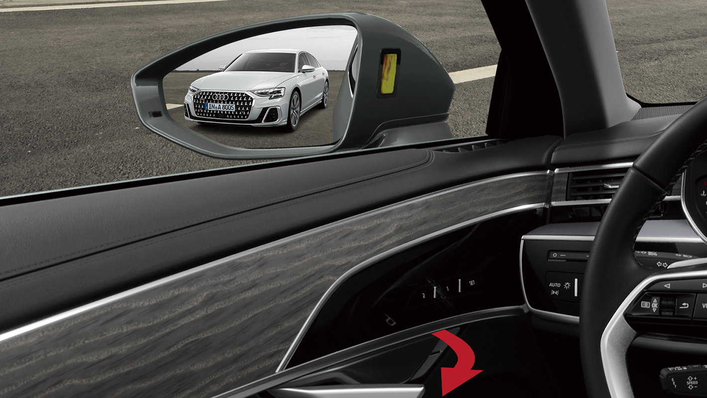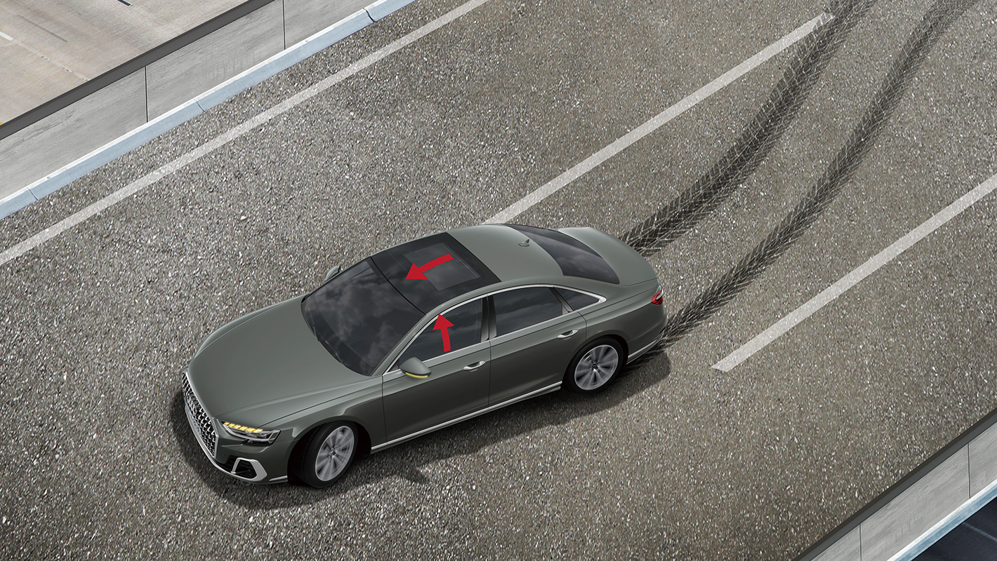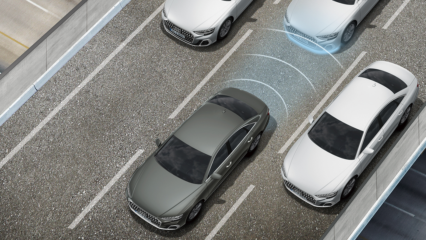 フロントクロストラフィックアシストの機能として、車両の左右から接近する車両を監視。衝突されるリスクが検知された場合、アウディプレセンスベーシックを起動します。アウディプレセンスベーシック、アウディプレセンスリヤと連携し、全周囲からの衝突に備えることができます。
