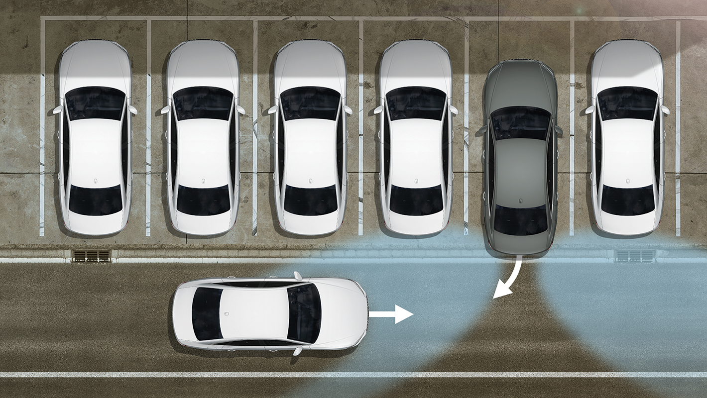 駐車スペースなどから車速約10km/h以下でバックして路上に出る際に、左右から接近する車両を監視。衝突の危険を警告します。ドライバーへの警告はMMIタッチディスプレイへの表示と音、そしてブレーキによる振動によって段階的に行われます。