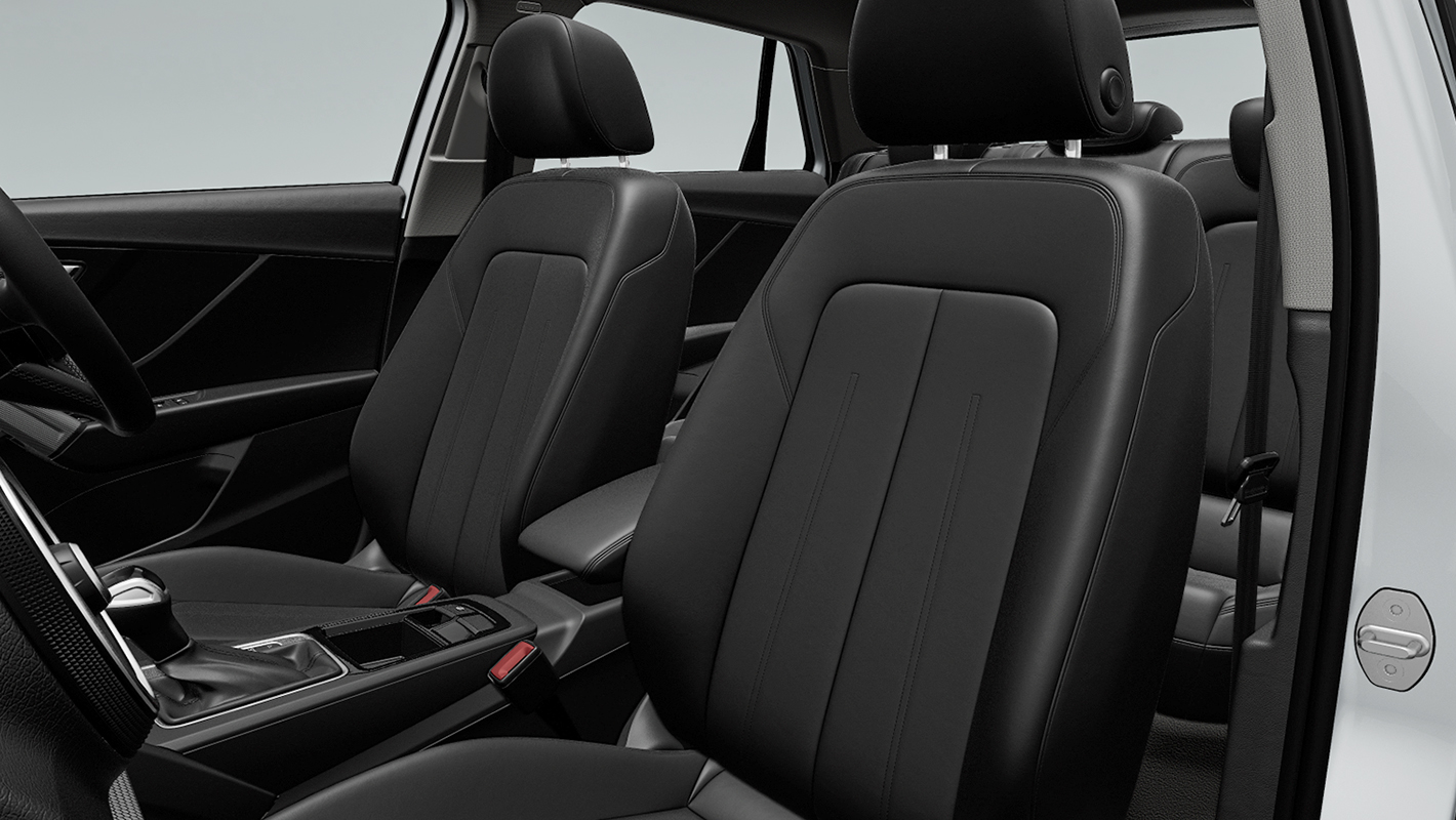 バーチャルコックピットプラス、タッチディスプレイ、スクリプトクロスで仕立てられたスタンダードシートを標準装備。オプションでブラックのレザー/アーティフィシャルレザーシートを選択することもできます。