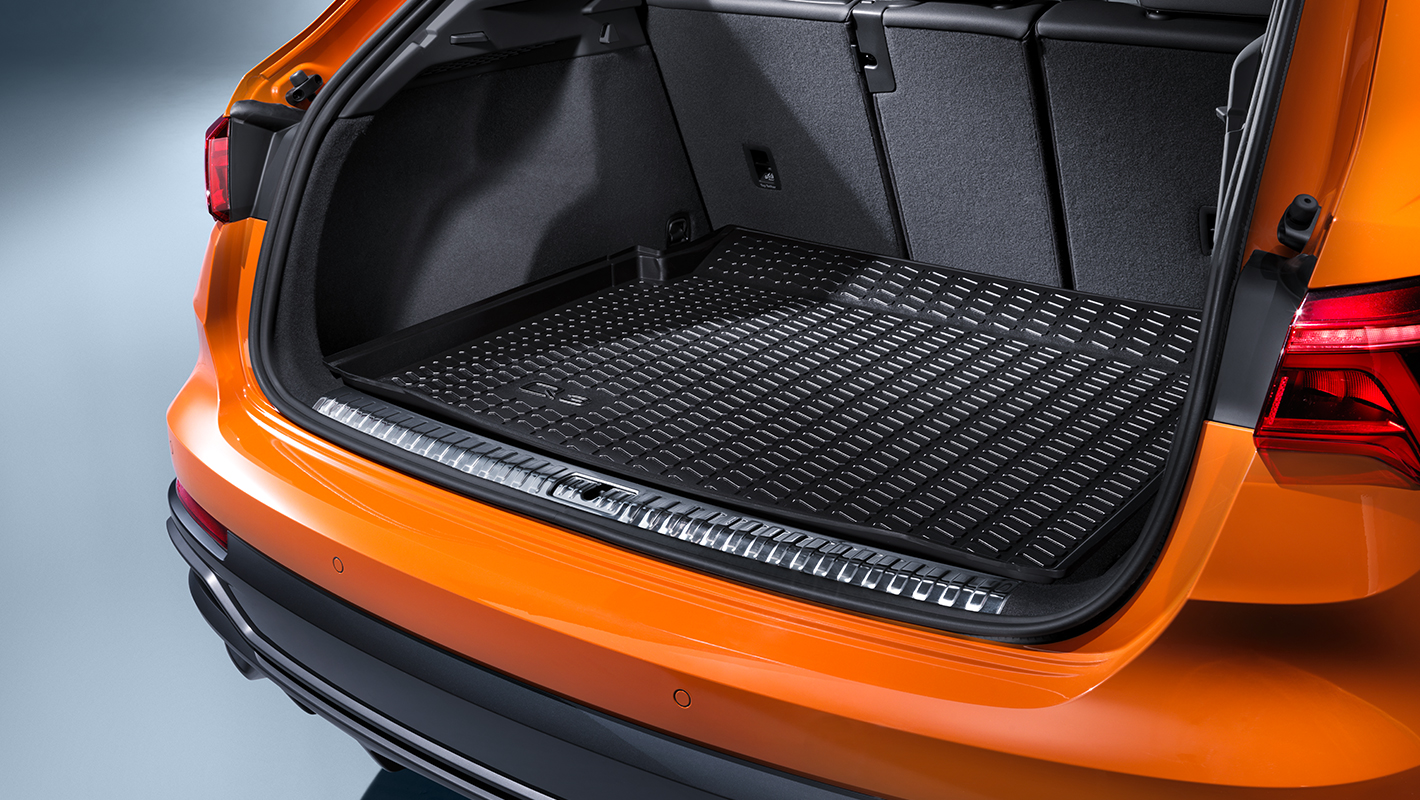 ラゲッジスペースを汚れから守る、Audi 純正ラゲッジルームシェル。Audi Q3のラゲッジスペースに精確にフィットし、「Q3」ロゴデザインがアクセントとして際立ちます。