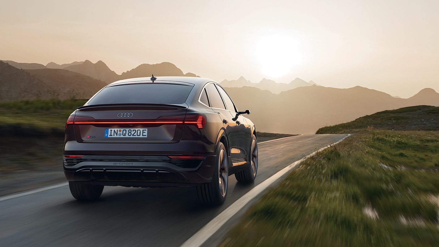 SUVの力強さとリヤに向かって美しく弧を描く流麗なシルエットを兼ね備えたAudi Q8 Sportback e-tronと、堂々たる重厚な印象のAudi Q8 e-tronをご用意。いずれも、ダイナミックなエクステリア、精緻にデザインされたインテリアを併せ持つS lineを設定しています。