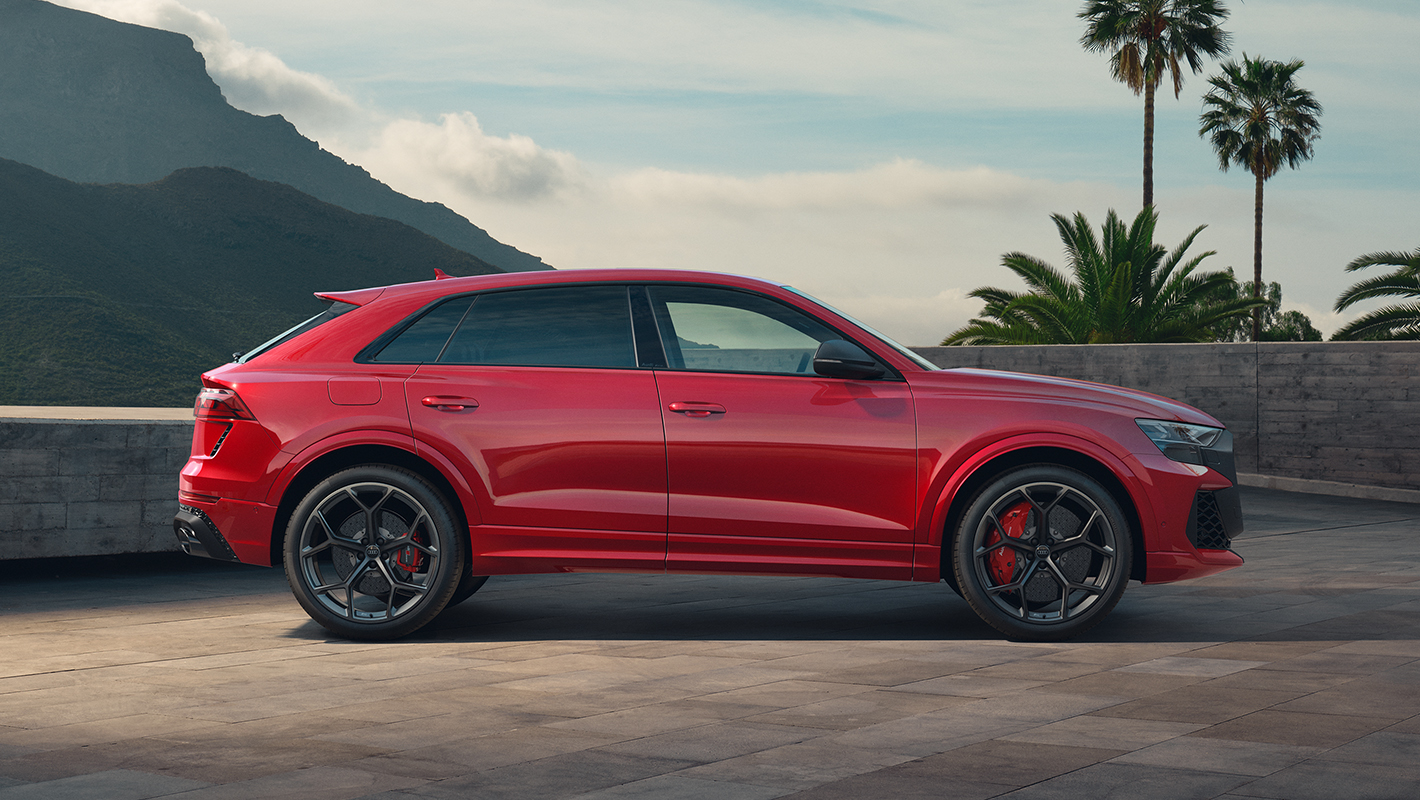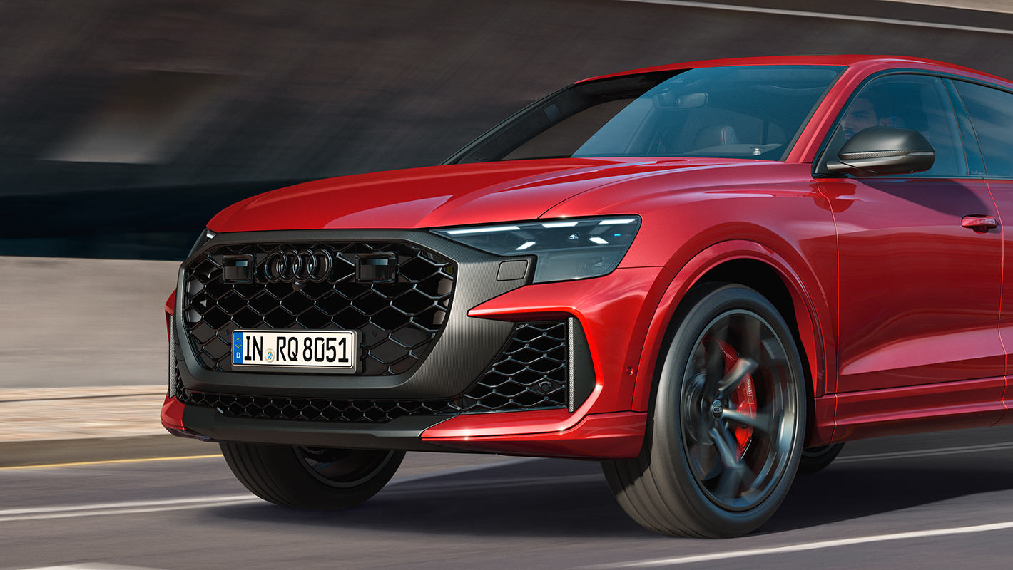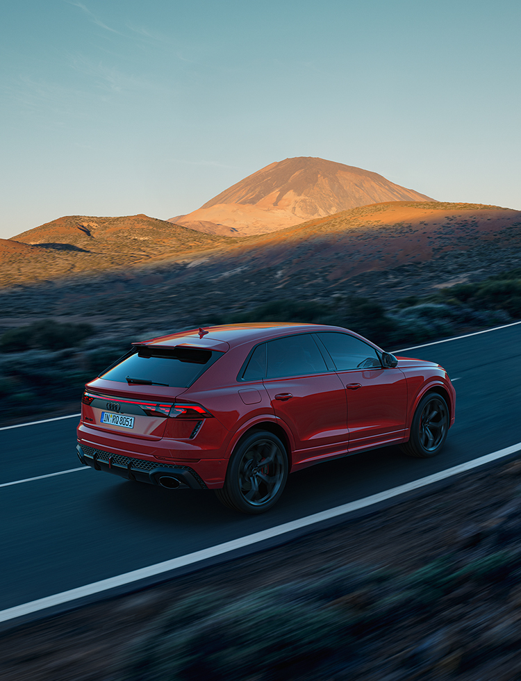performanceモデルとして磨き上げたパワフルで表情豊かなRS専用エクステリアと、Audi Q8の頂点にふさわしい細部までエレガンスとスポーティネスを貫いたインテリア。印象的な表情を演出するライティングテクノロジー。Audi Sport史上最も強力なエンジンが生み出す比類なきドライビングダイナミクスを、個性際立つスタイリングに体現しています。