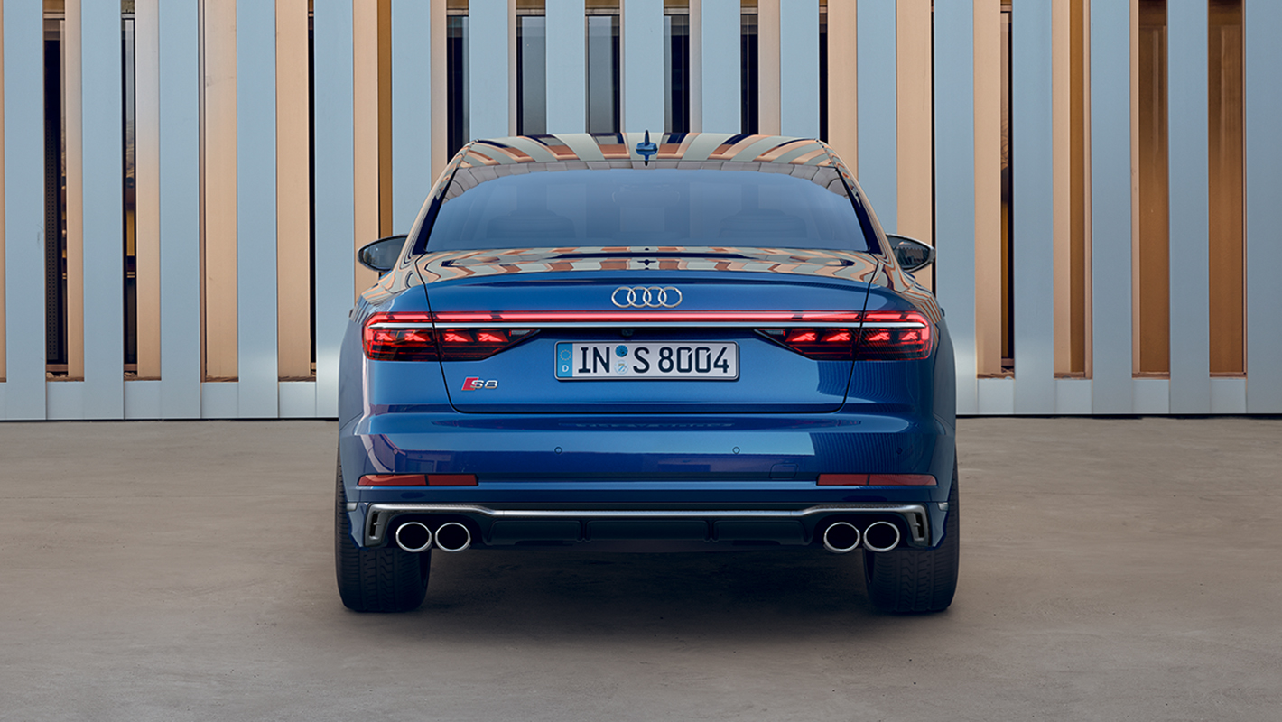 Audi S8の造形は、プレステージサルーンとしての品格と常識を超越するパフォーマンスへの自信に満ちています。Sモデル専用のシングルフレームグリルやバンパー、アグレッシブな21インチアルミホイールが精悍な表情を創出。端正なデザインのデジタルマトリクスLEDヘッドライト*とOLEDリヤライトは、美しさと革新性がひとつに調和しています。