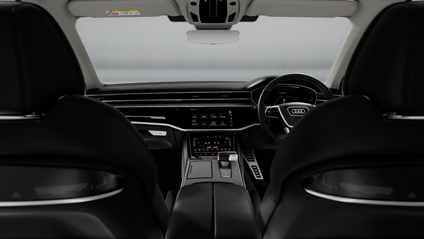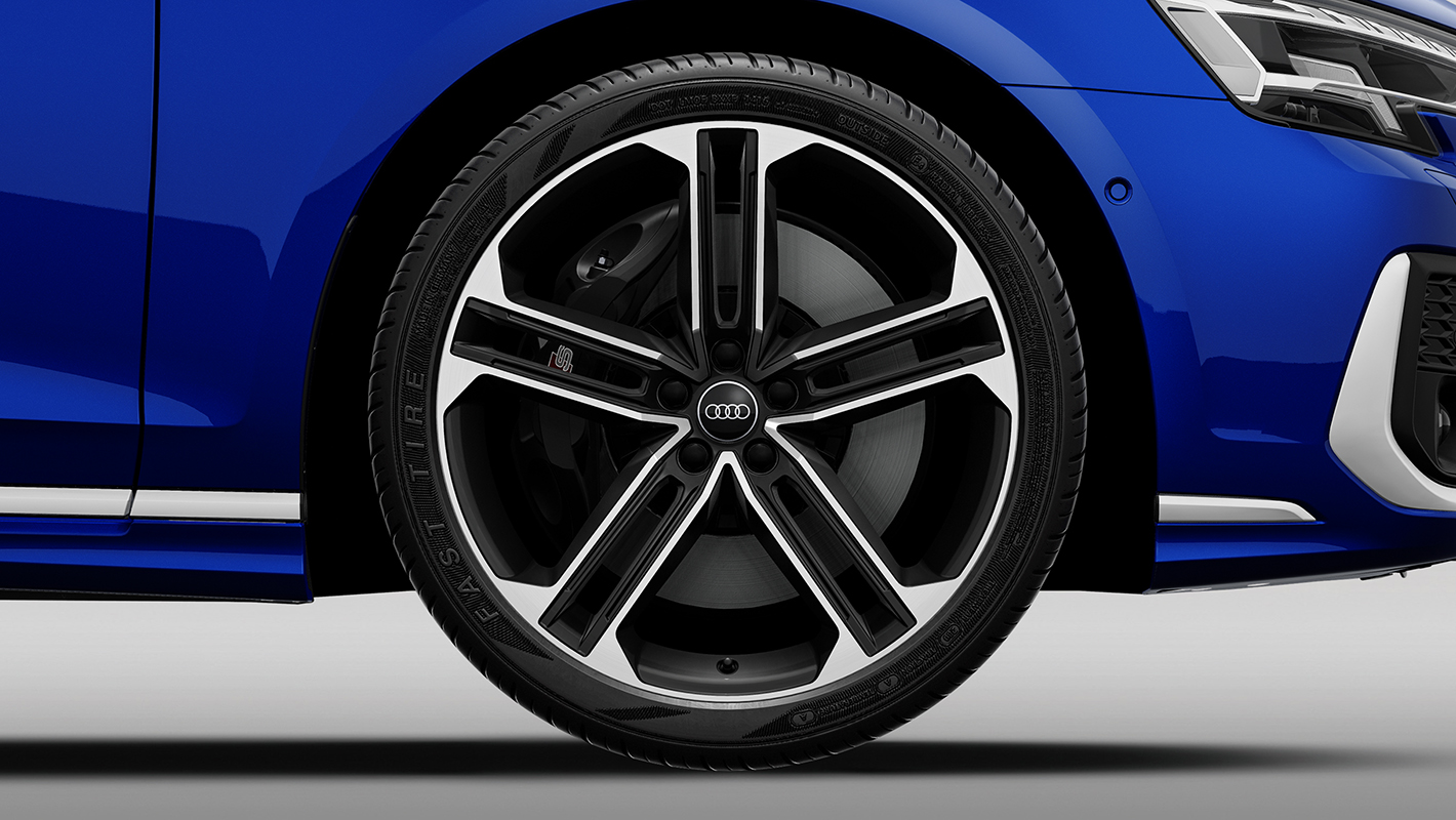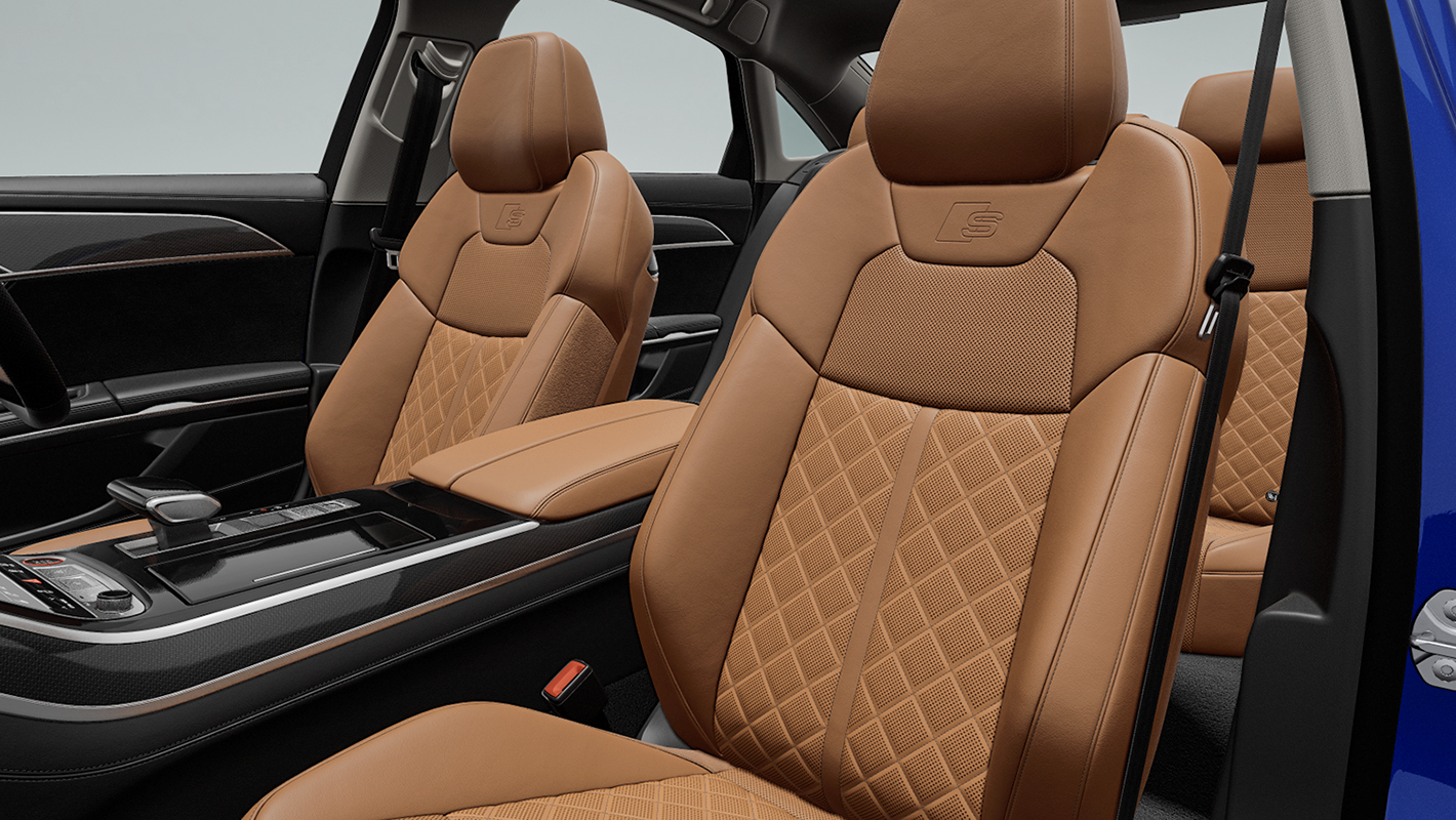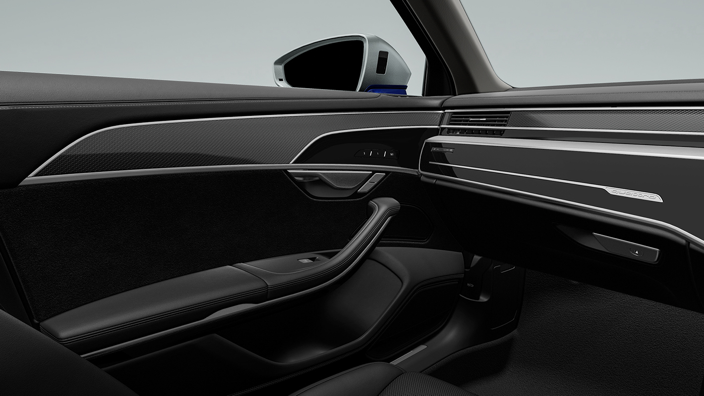 フラッグシップモデルにふさわしい洗練された姿と、Sモデル専用デザインが融合。アルミニウムルックインサートを備えたハニカムメッシュデザインのシングルフレームグリル、力強い印象の前後バンパー、4本出しのテールパイプがパフォーマンスの高さを表現。アルミニウムルックのエクステリアミラーハウジング、大径21インチのアルミホイールが精悍さを演出。Audi S8の造形は、プレステージサルーンとしての品格と常識を超越するパフォーマンスへの自信に満ちています。