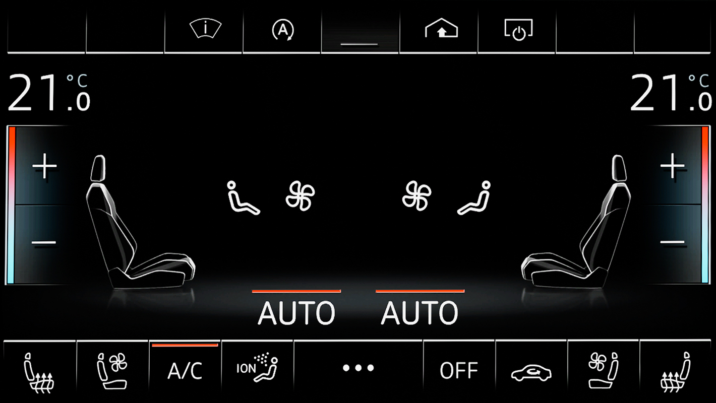 運転席と助手席それぞれで室温を調節でき、快適な室内空間をもたらします。ウィンドスクリーンとサイドウィンドウにデフロスターノズル、また複合汚染物質/微粒子除去フィルターも装備しています。