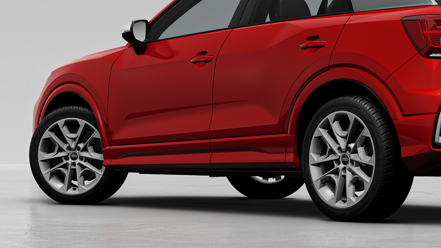 Sモデル専用デザインのグリルやバンパー、アルミニウムルックのエクステリアミラーなどのデザインエレメントがスポーティな佇まいを演出。足元には18インチアルミホイールを標準装備。リヤエンドでは専用ルーフスポイラーや4本出しテールパイプが力強い走りを予感させます。