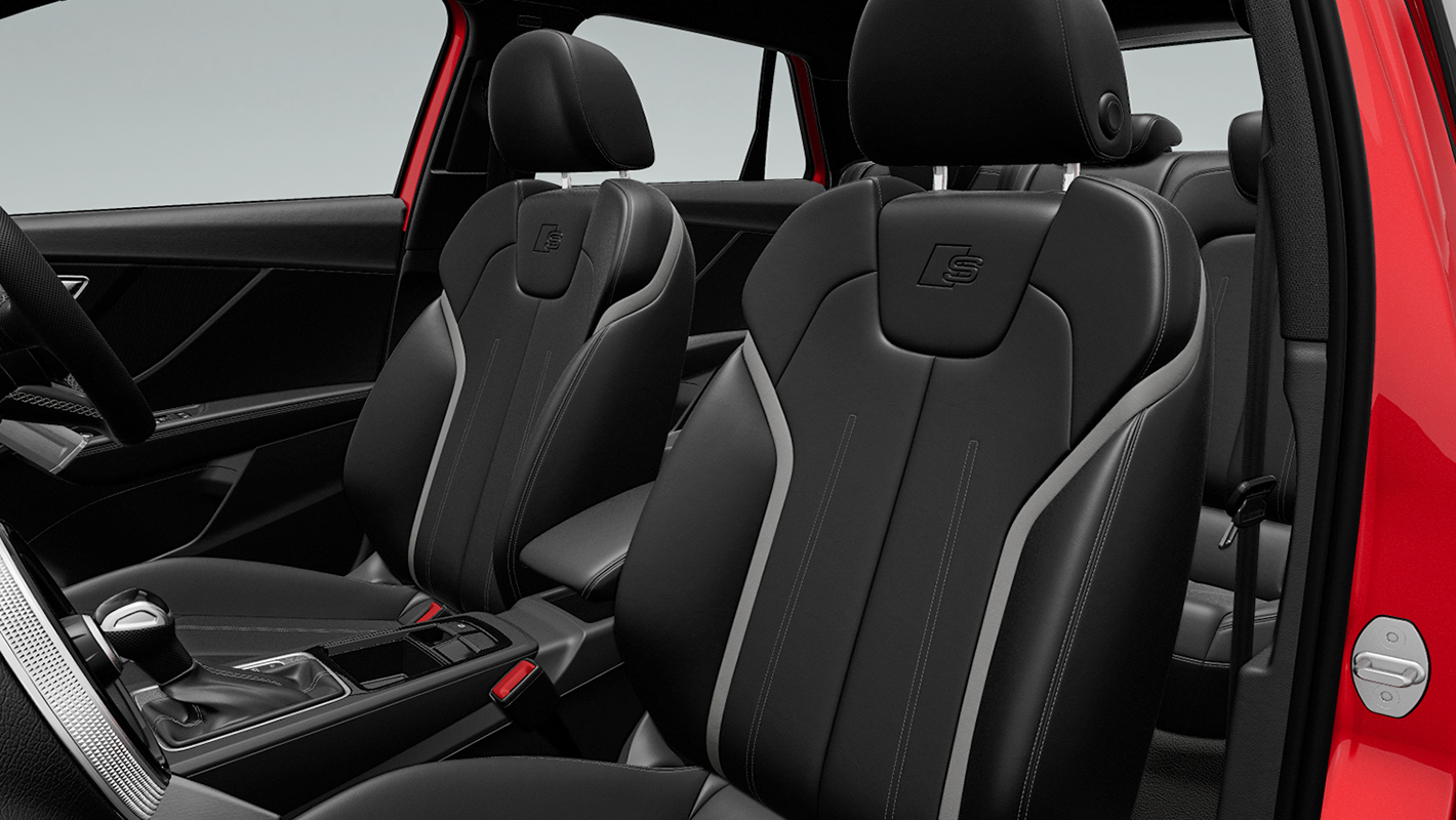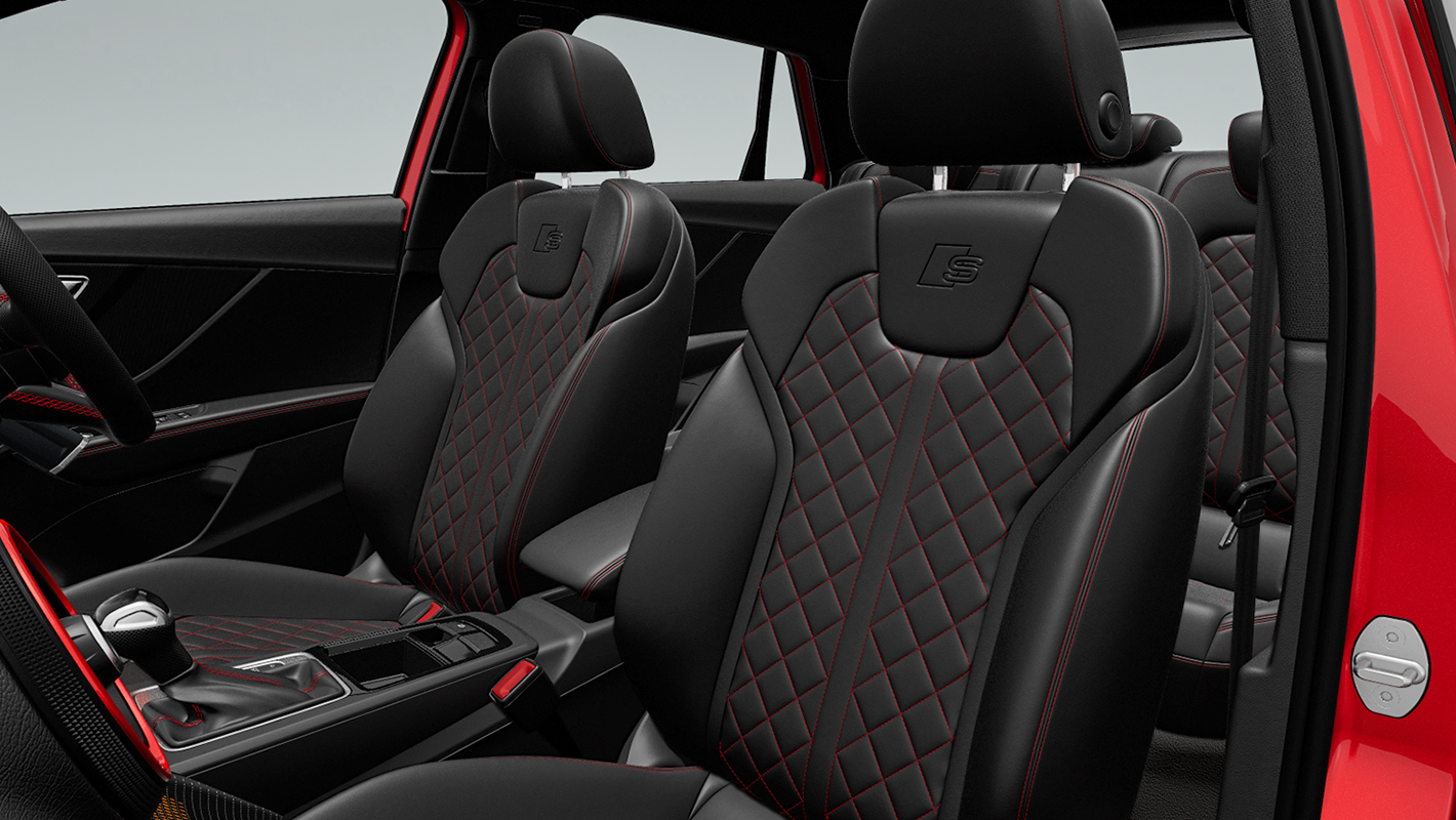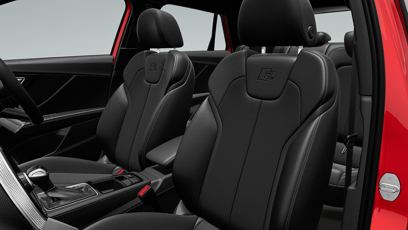 ブラック基調の空間に、アルミ調の加飾を施したSモデルにふさわしいシックでスポーティなインテリア。高い質感とホールド性を兼ね備えたクロス/レザーのスポーツシート、ブラックのヘッドライニングやステンレススチールのペダル、Sロゴが刻まれたドアシルトリムが空間を引き締めスポーティネスを際立たせます。