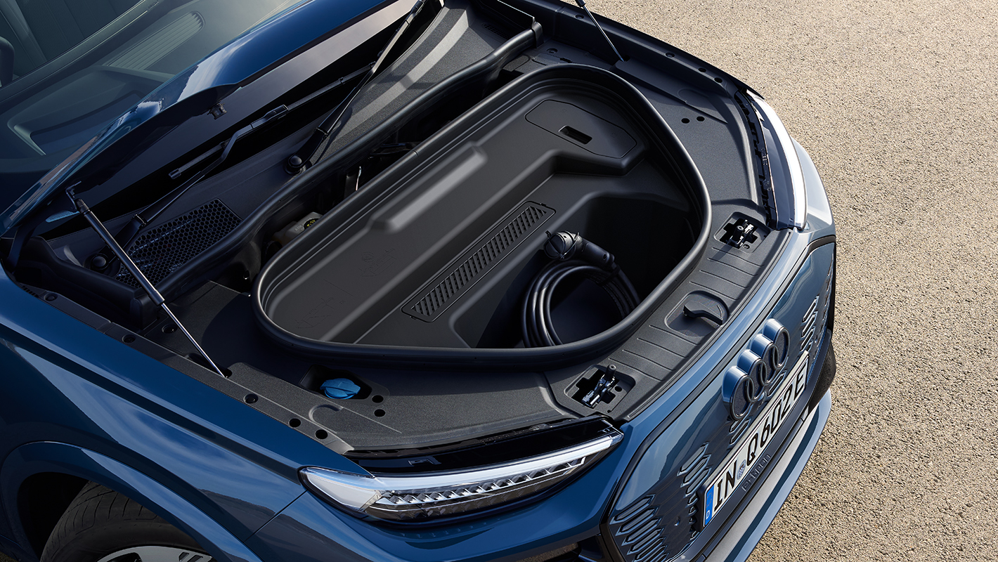 ボンネットの下に64ℓのラゲッジスペースを設置。充電ケーブルや小型の旅行バッグなどを収納できます。