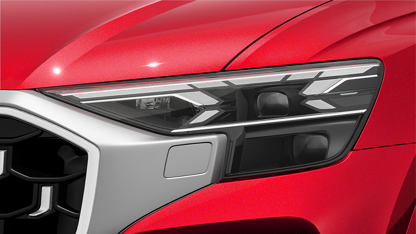 HDマトリクスLEDヘッドライトは、解像度が高い光で道路を高精細に照射。高速走行でハイビーム使用時にカメラが対向車や先行車を検知すると、そのエリアへのハイビームをオフにしつつ、それ以外の車間エリアや周辺は明るく照らし続けます。アウディレーザーライトは高速走行時に作動し、ハイビームの照射距離を約2倍に拡大。MMIタッチディスプレイで4つの点灯パターンを切り替えられるデジタルデイタイムランニングライトと、印象的な光の流れを生みだすダイナミックターンインディケーターも搭載しています。