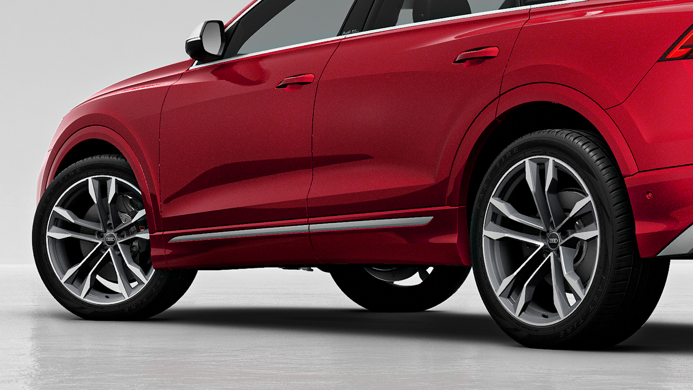 アダプティブエアサスペンションは、4輪すべての減衰特性を無段階に調整する電子制御式エアサスペンションです。車高とダンピングが自動的に制御され、快適な乗り心地とよりダイナミックな走りを実現。アウディドライブセレクトでオンロードからオフロードまで走行シーンに合わせた最適な車高に設定可能。また、荷物の積み込みを容易にするため、ラゲッジコンパートメントにあるボタンでリヤを低く設定することもできます。S/RSアダプティブエアサスペンションは、アダプティブエアサスペンションをベースに、サスペンション設定をよりスポーティな走行特性、機敏なハンドリングに適応させています。