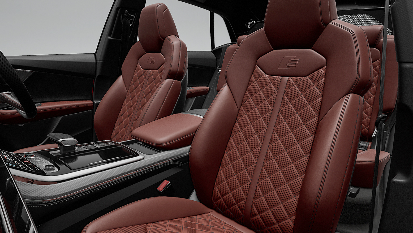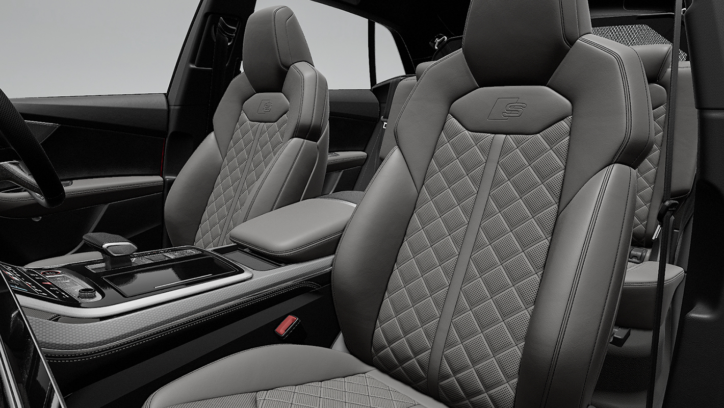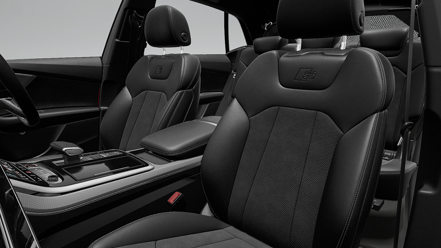Sロゴが刻まれたダイナミカ/レザーのスポーツシートに加え、ヘッドライニングまでブラックで統一し、スポーティな中にも常にくつろぎを忘れない上質なドライビング空間を演出。デコラティブパネルはエンボス加工を施したマットブラッシュトアルミニウム製。足元には質感、耐久性に優れたステンレススチールフットペダルを備えディテールまでスポーティネスを貫いています。